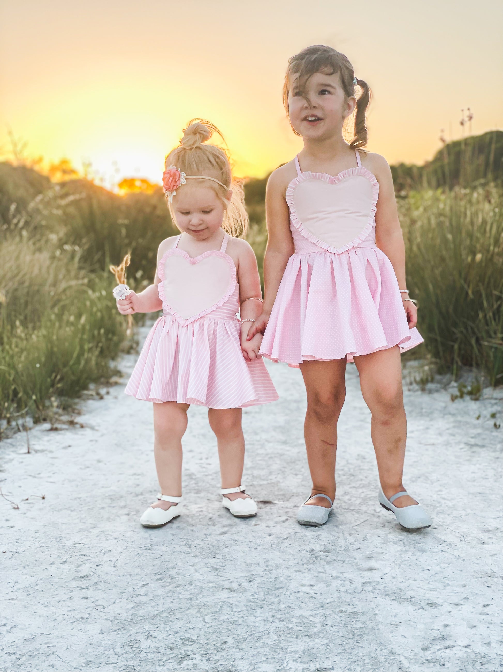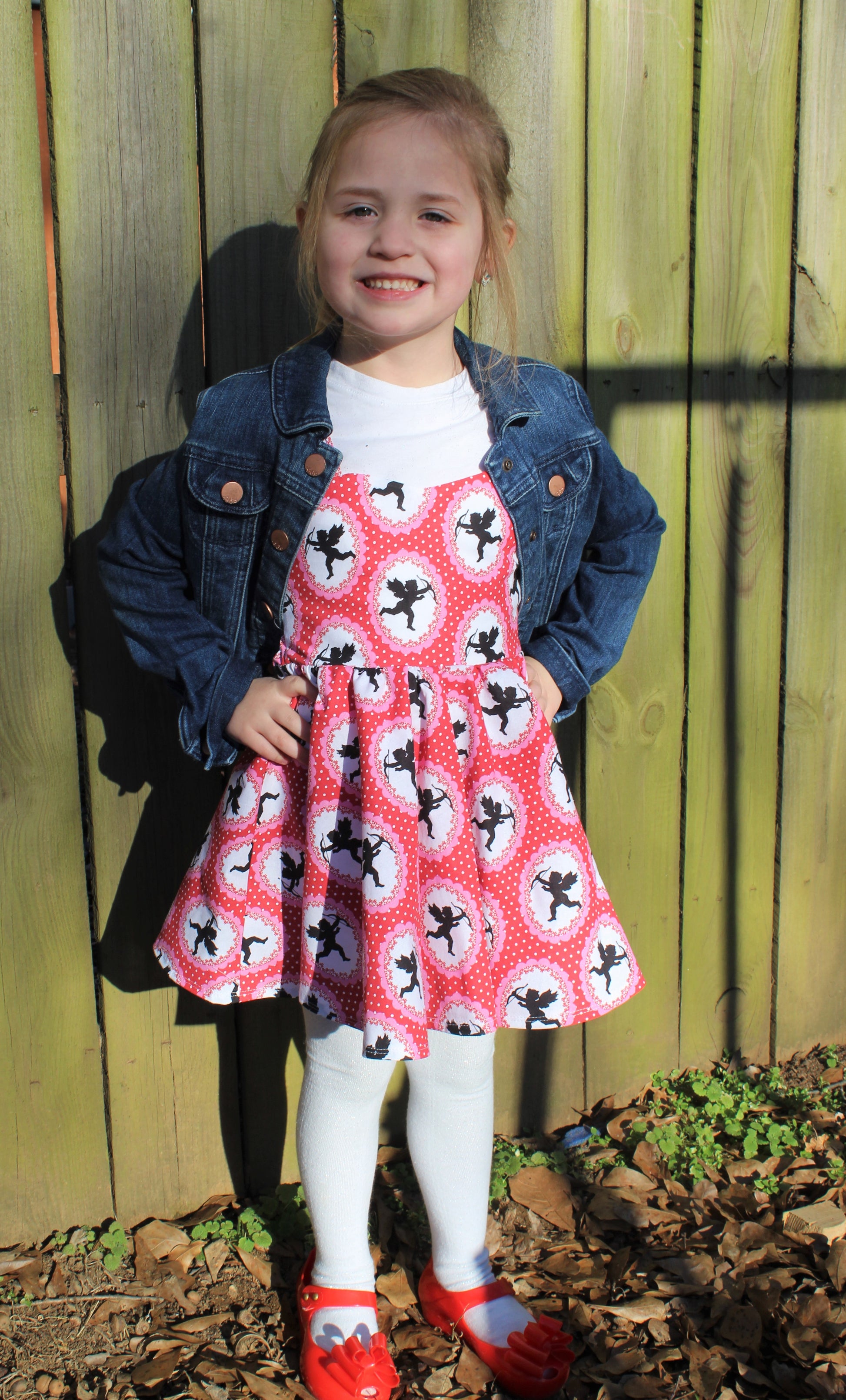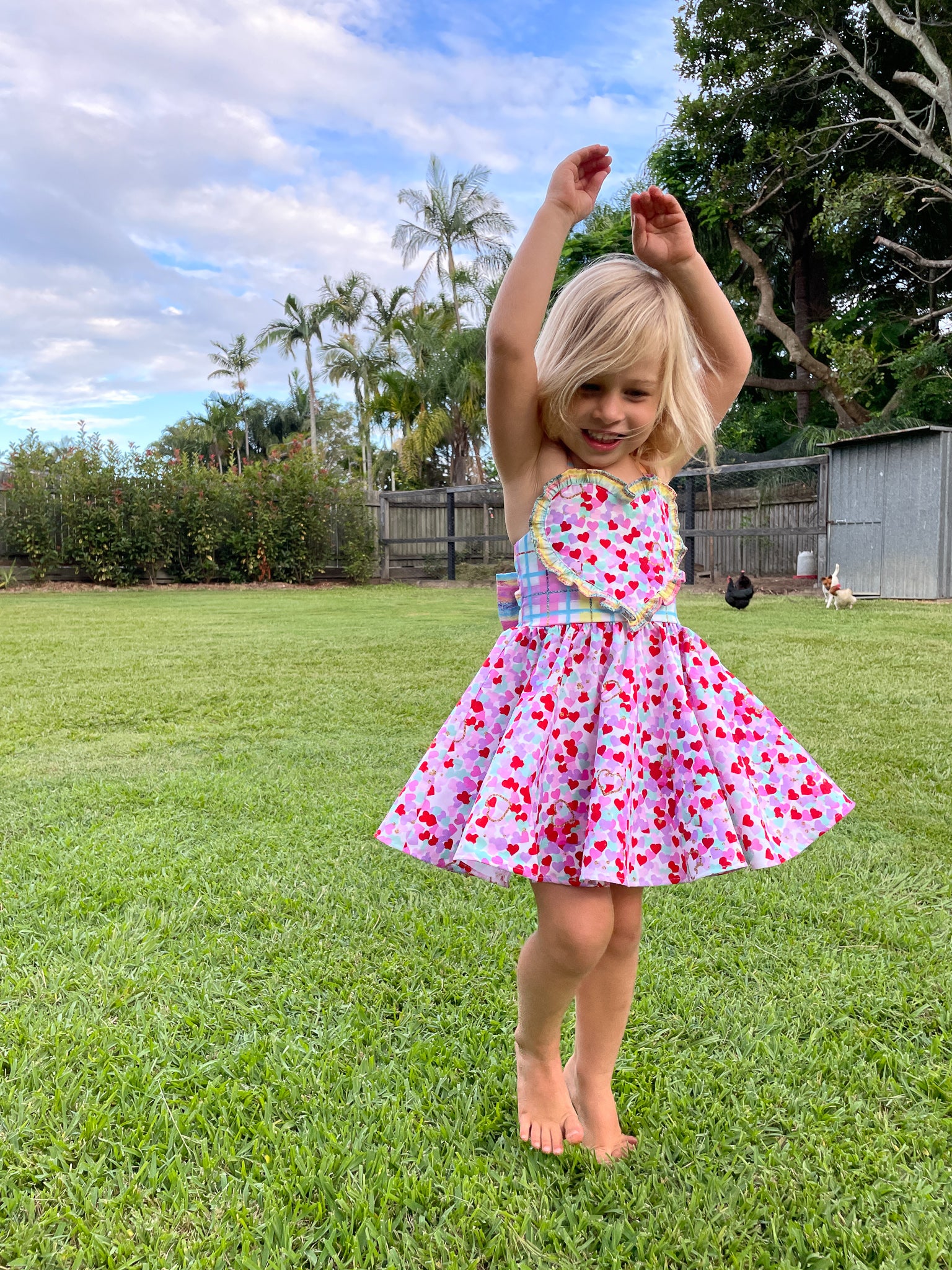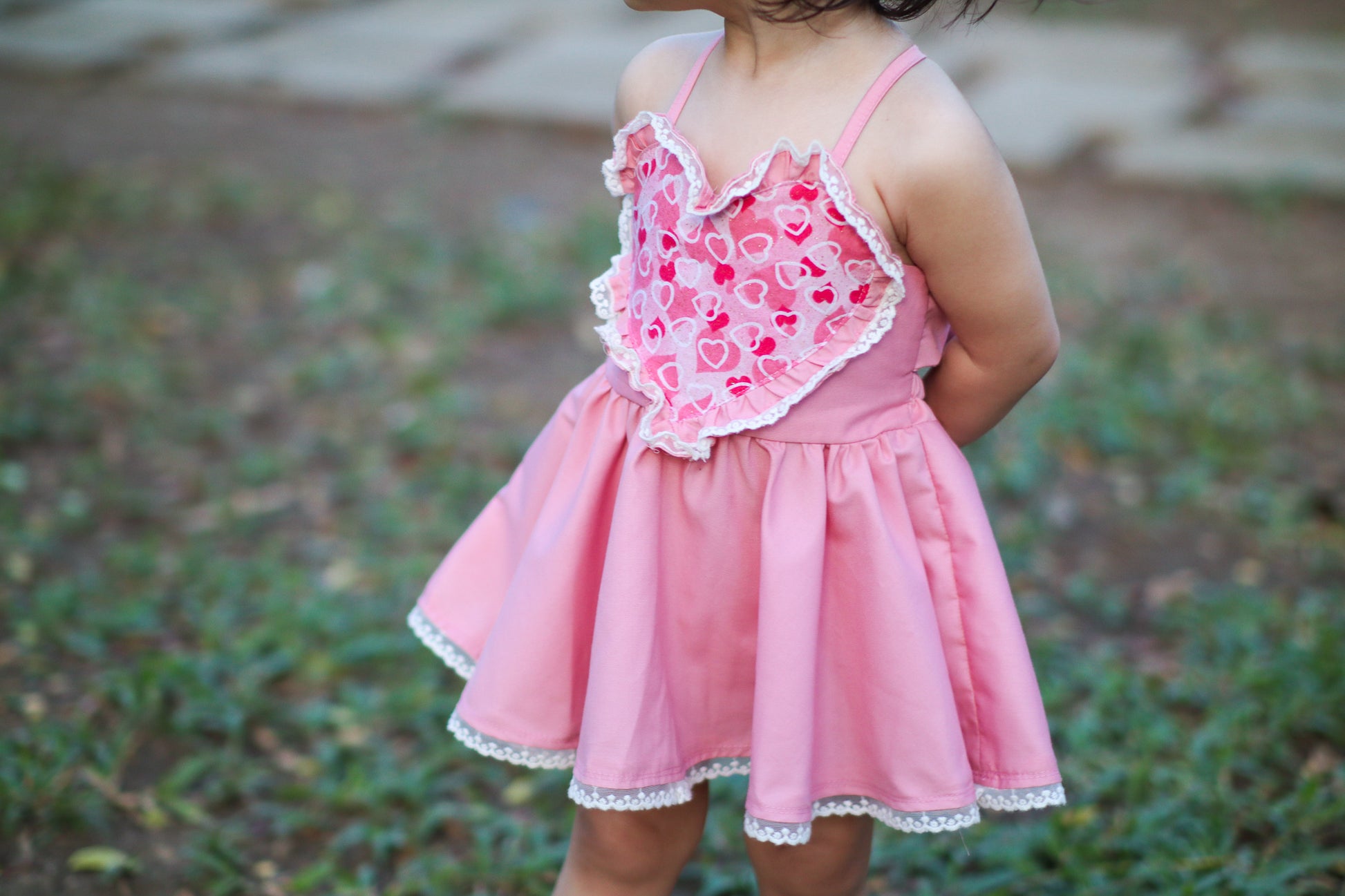 Amoree is a sweet little dress perfect for Valentine's day! It features a sweetheart neckline and an optional heart patch front. It also has the sweetest back!