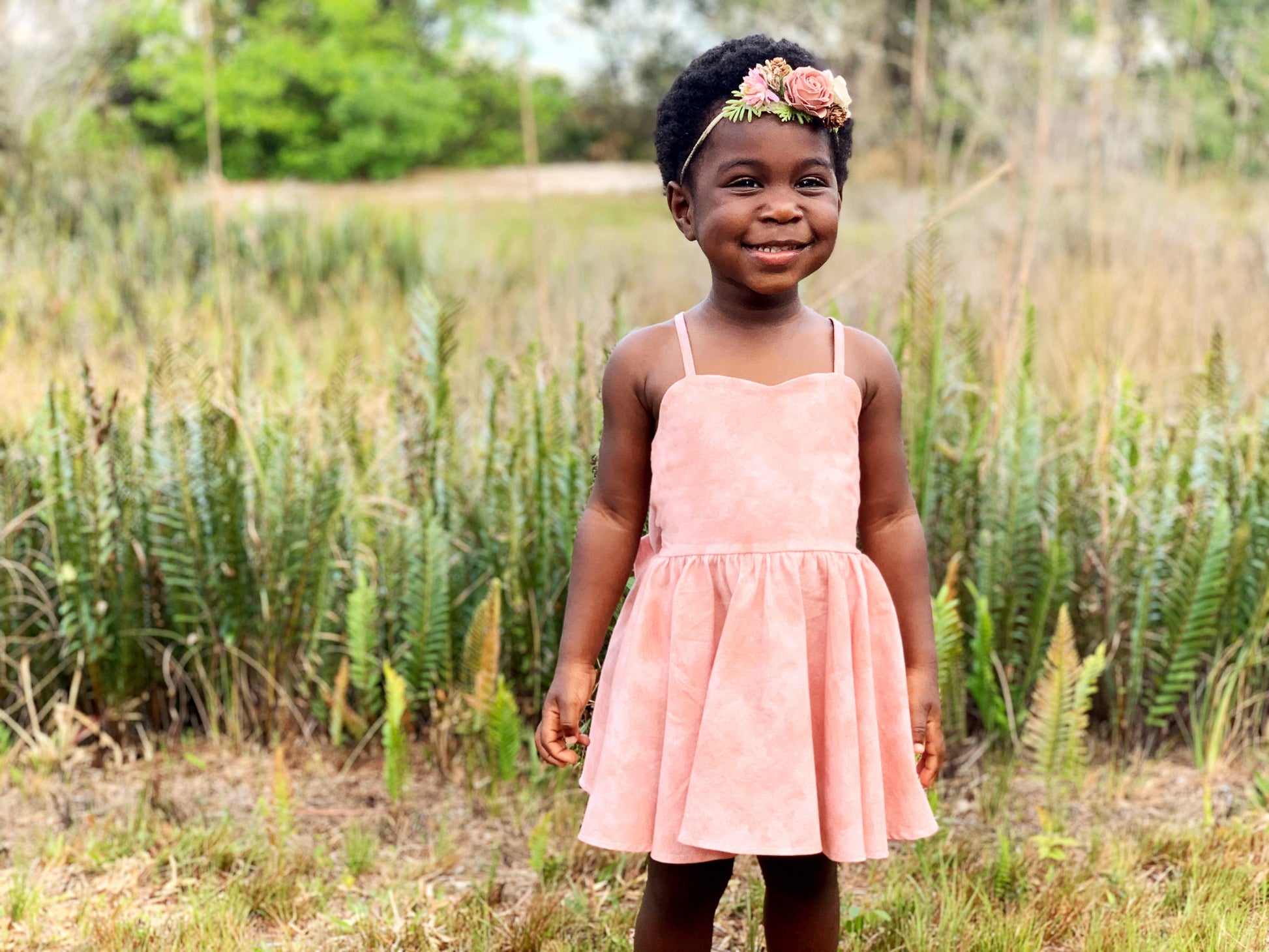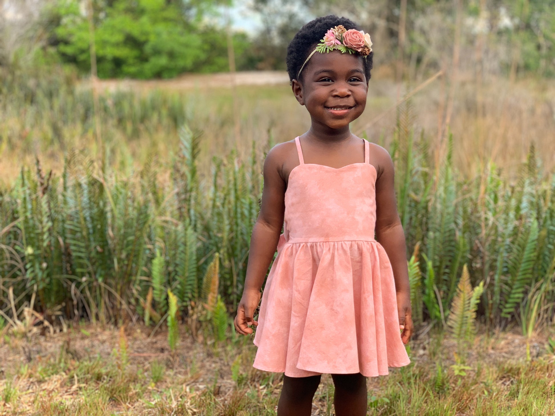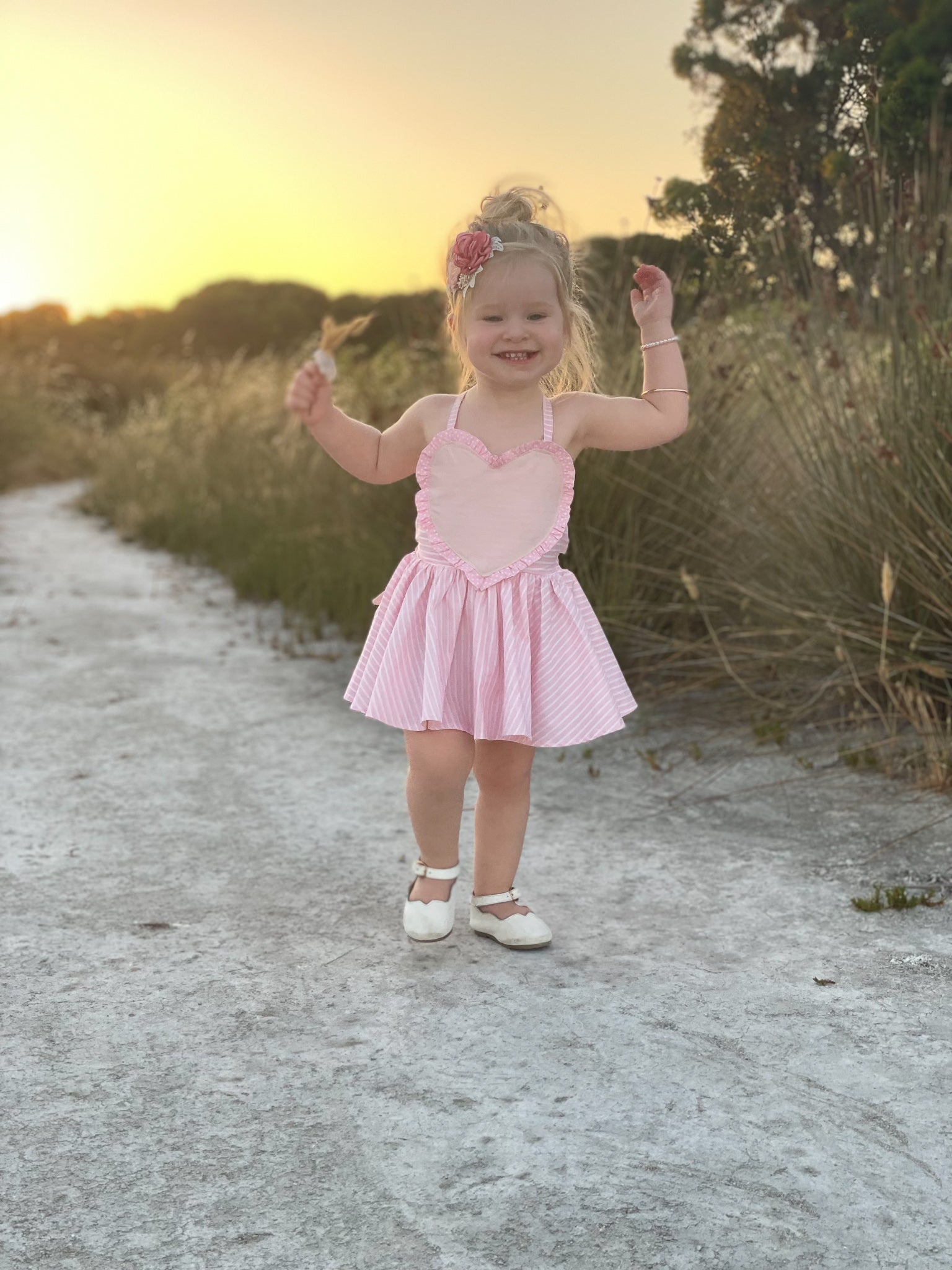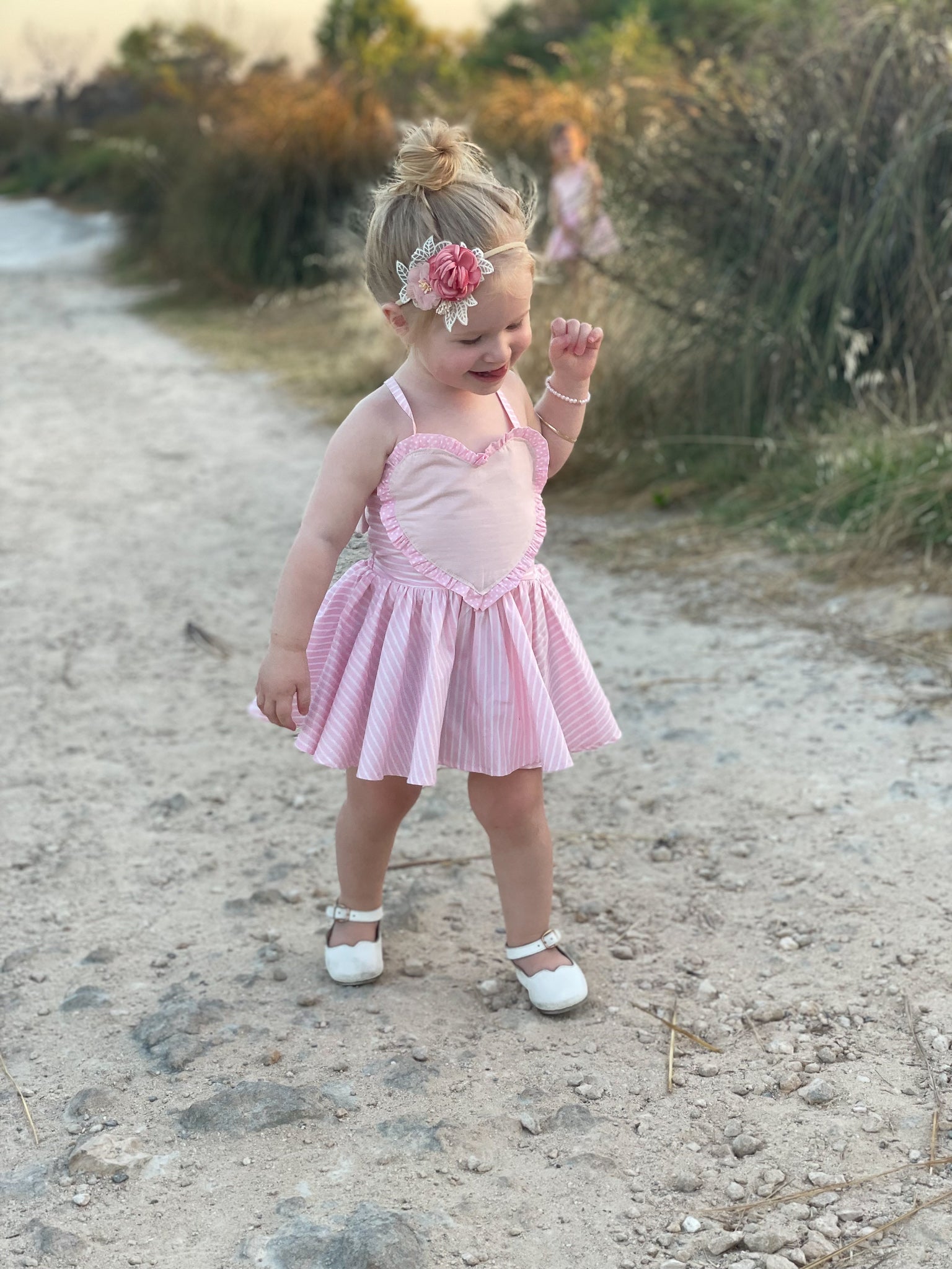 Amoree is a sweet little dress perfect for Valentine's day! It features a sweetheart neckline and an optional heart patch front. It also has the sweetest back!