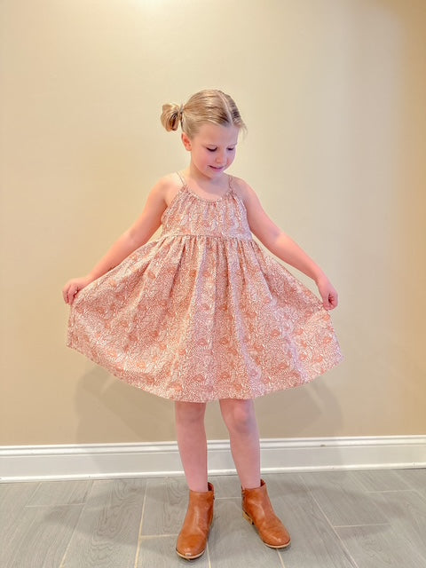 Annie is a sweet slip-on dress designed with plenty of room for movement and play. Create a tunic and pair it with your favorite bloomers or biker shorts for the perfect outfit for a day at the park, or sew it as a dress for endless twirls.