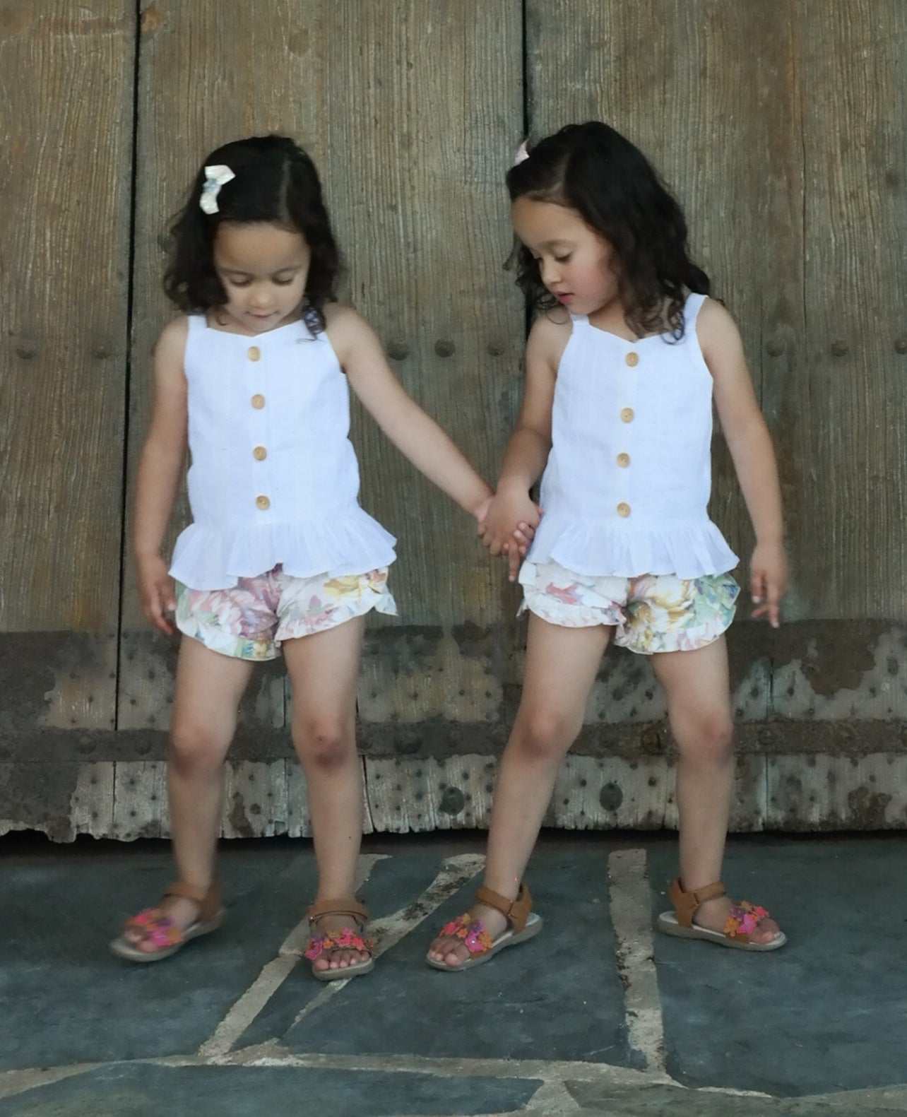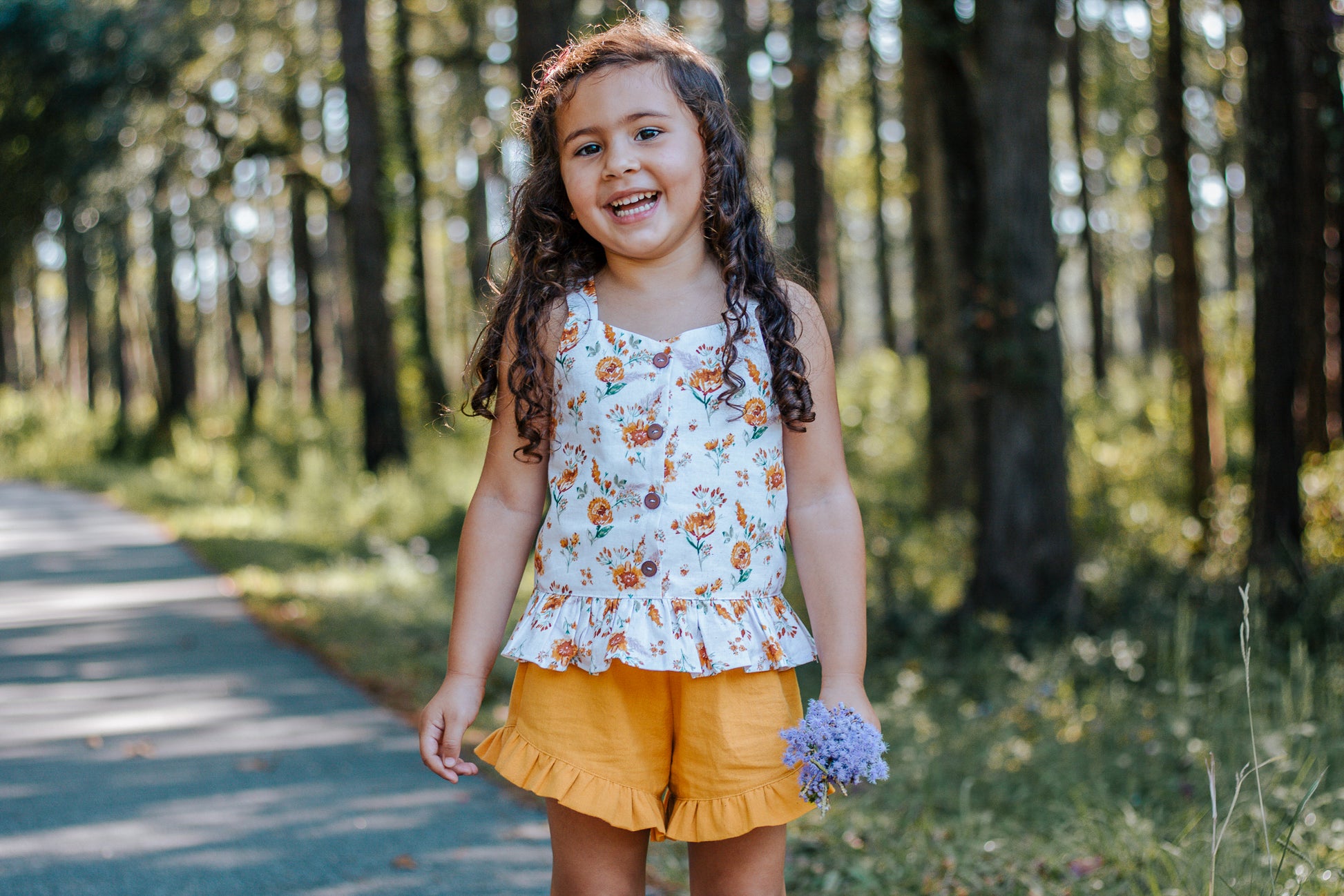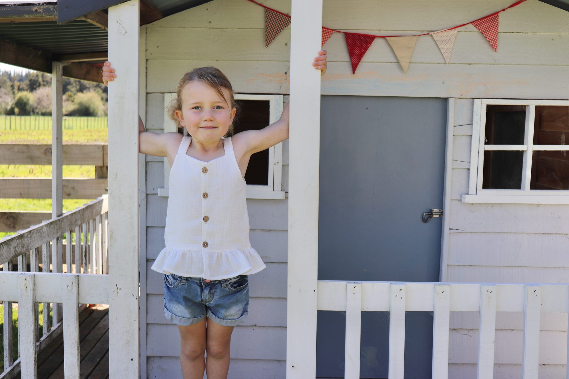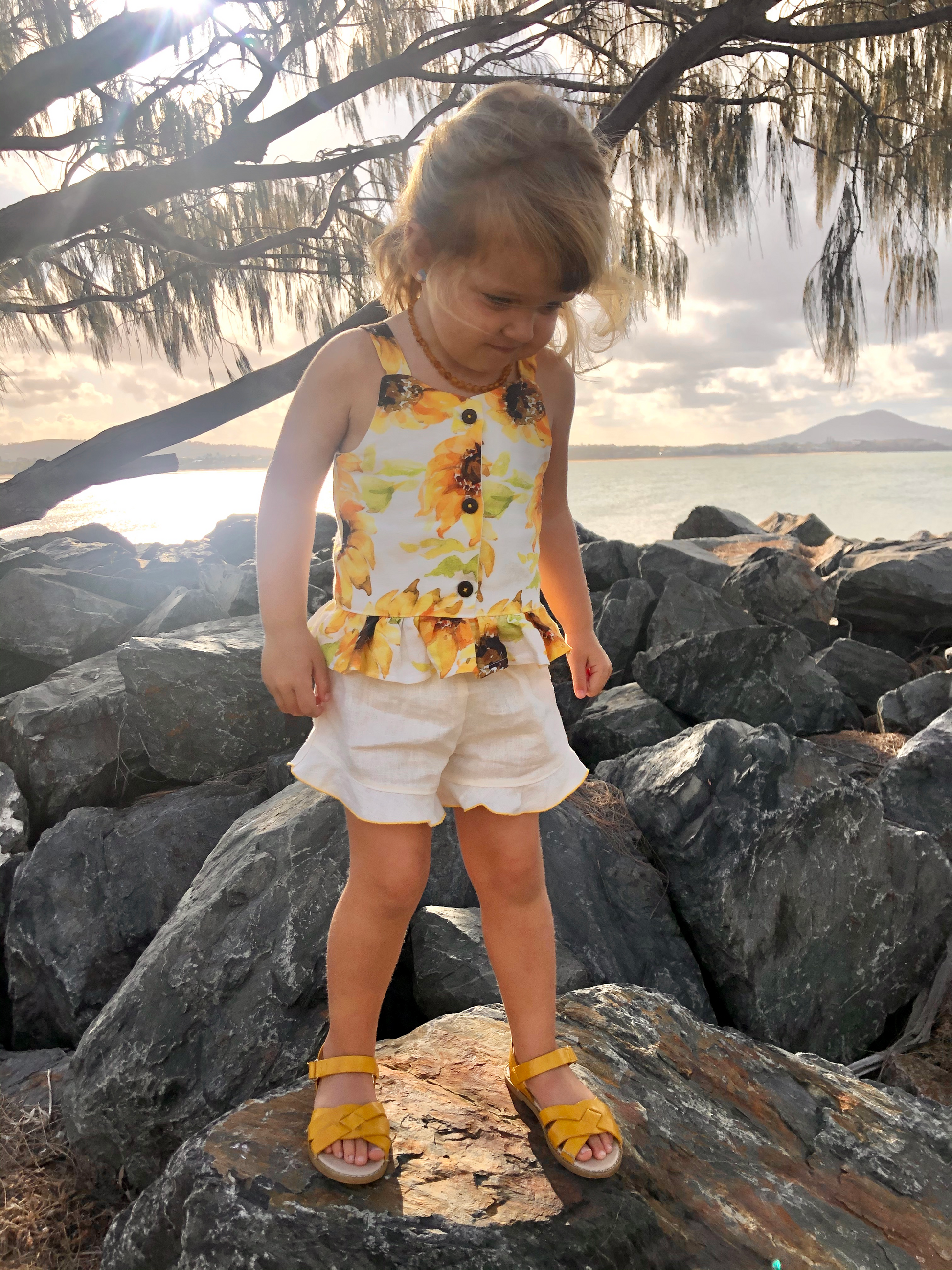 The Arya Top is your new go-to piece for casual, effortless style. With its singlet-style silhouette, charming button-up front, and ruffle hem, Arya is a breeze to wear on warm summer days—or layered under a cozy cardigan for cooler seasons. Whether worn to the playground or paired with jeans for a weekend outing, Arya is a wardrobe staple with a playful twist.
