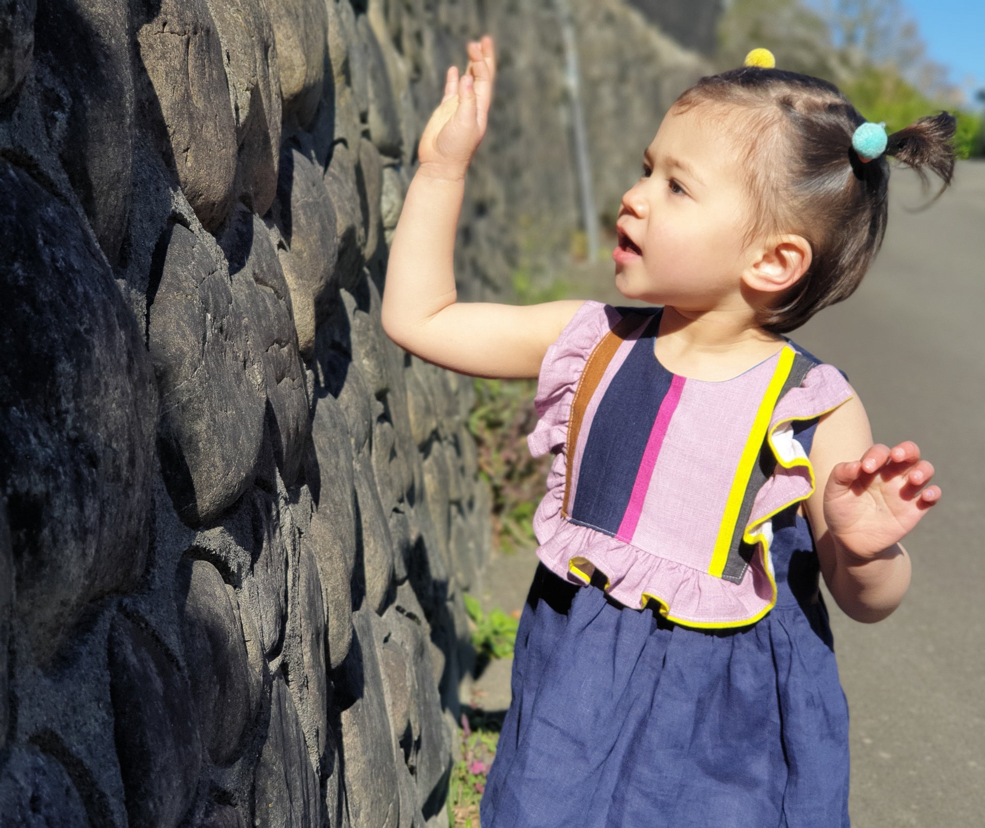 Isabelle is a unique but classic design which will surely be a staple in your girl’s wardrobe. Features a square front bib with sweet ruffles, it is the perfect size for featuring your
