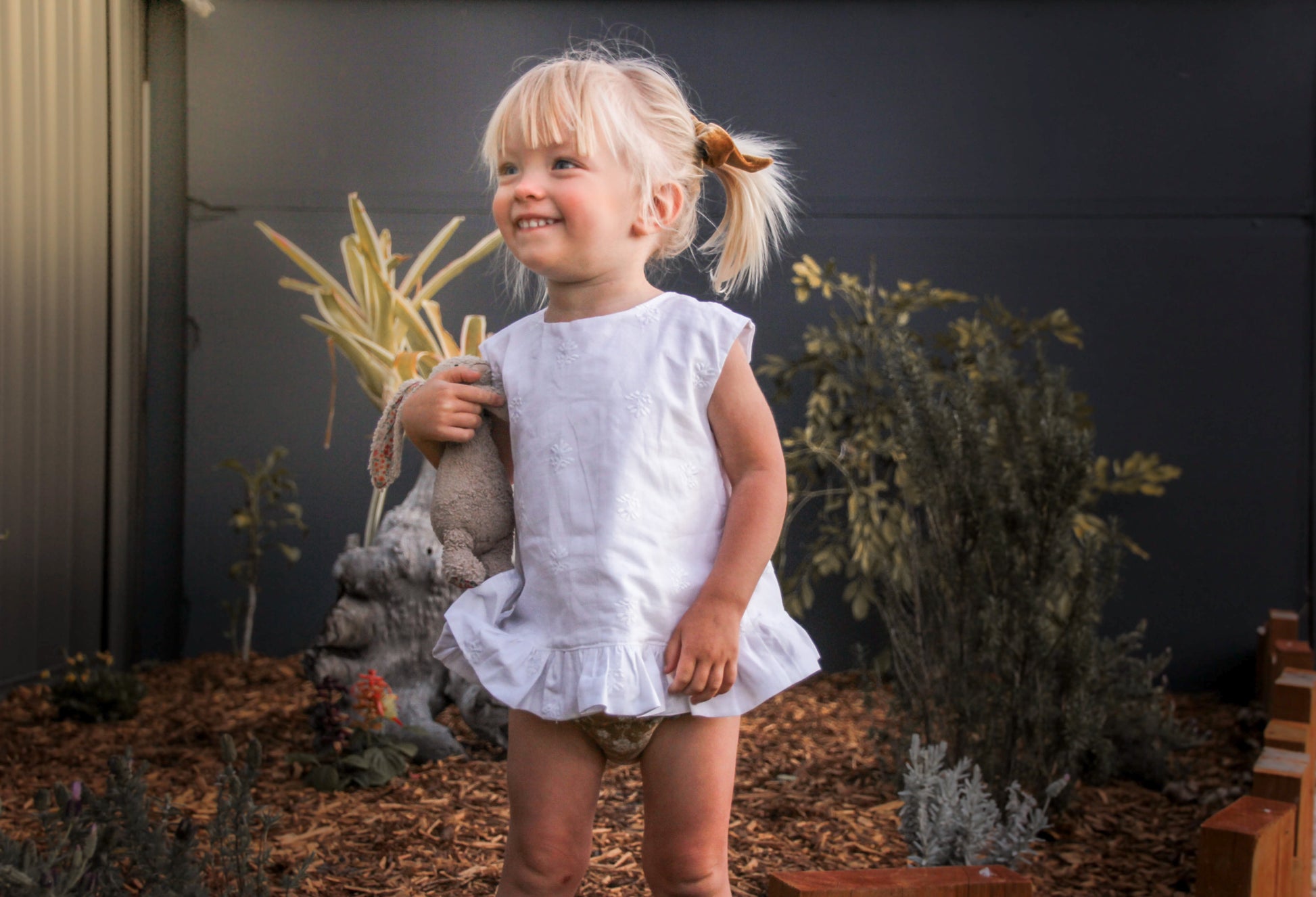 Isla is a cute and fun little swing top. It features a tulip back design and a ruffle-trimmed hem. The cap sleeve offers more protection from the sun, so it’s perfect for everyday play. Oh, and it’s reversible too!