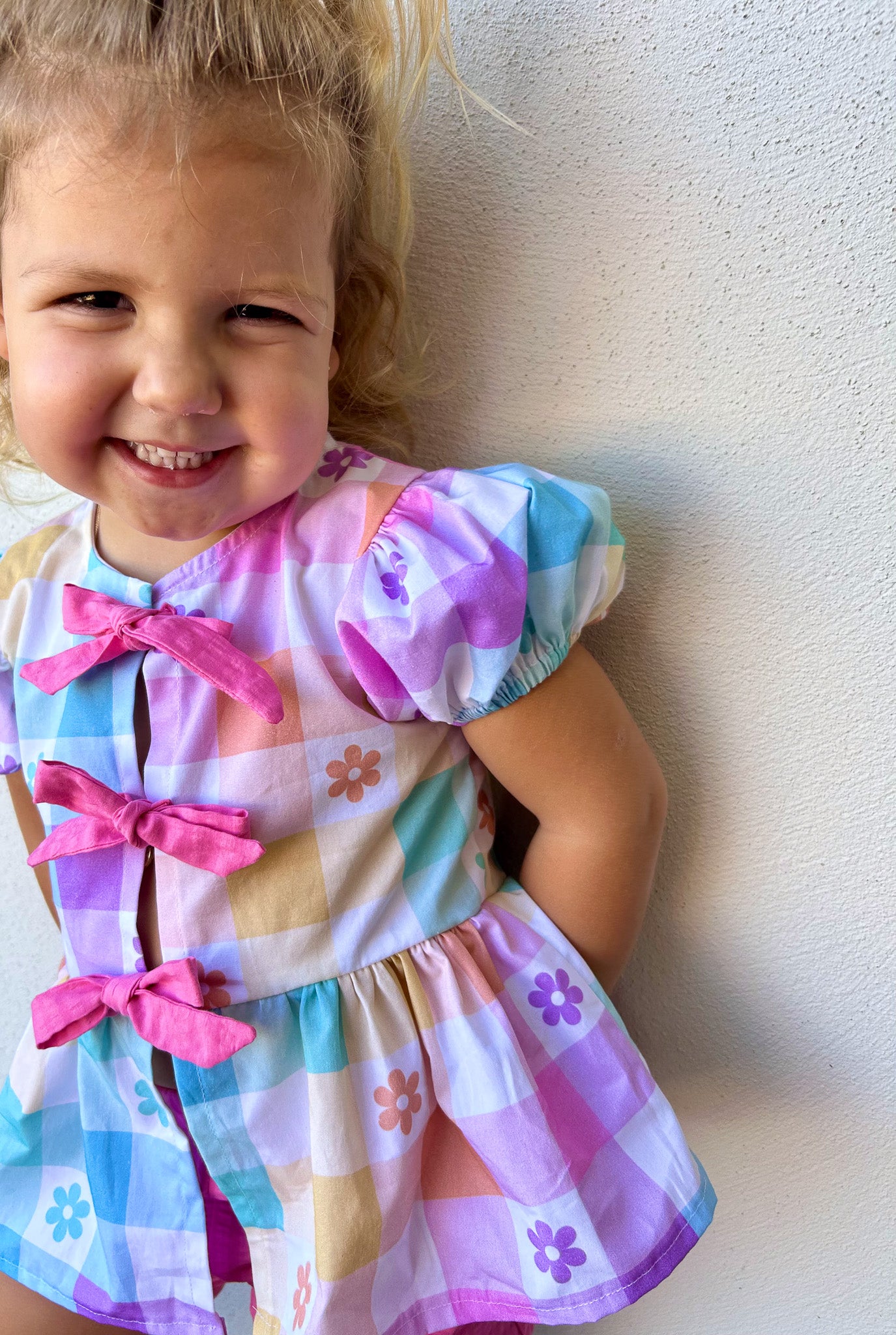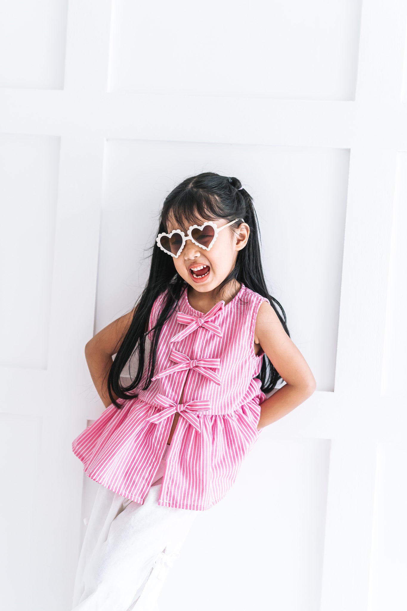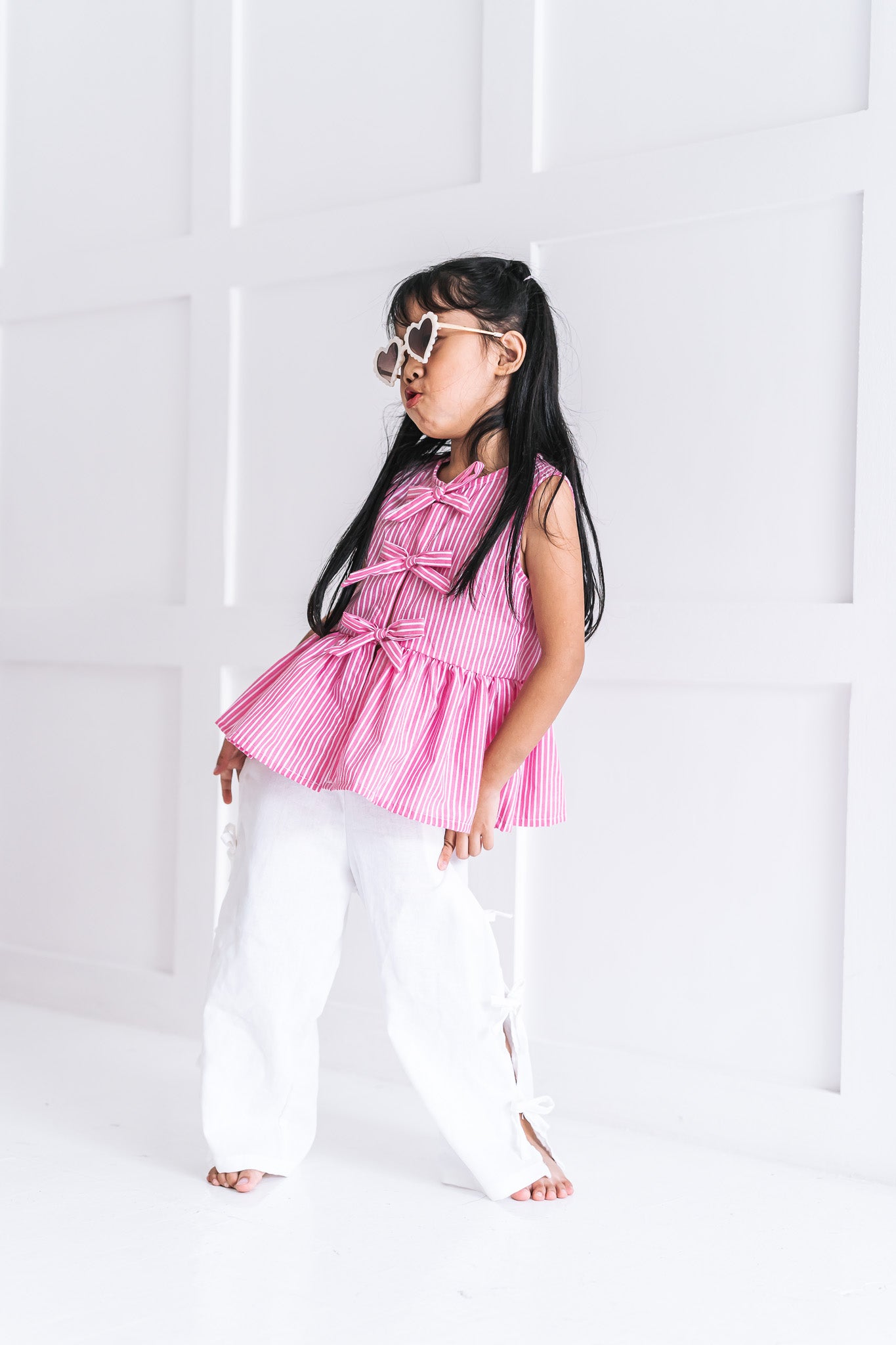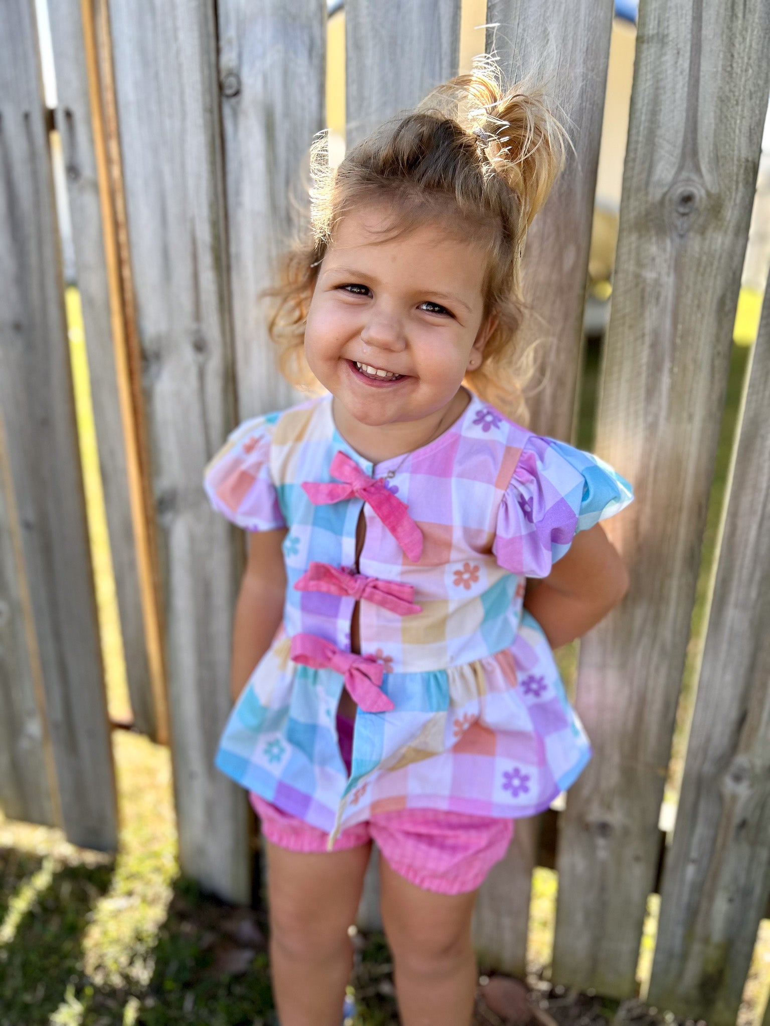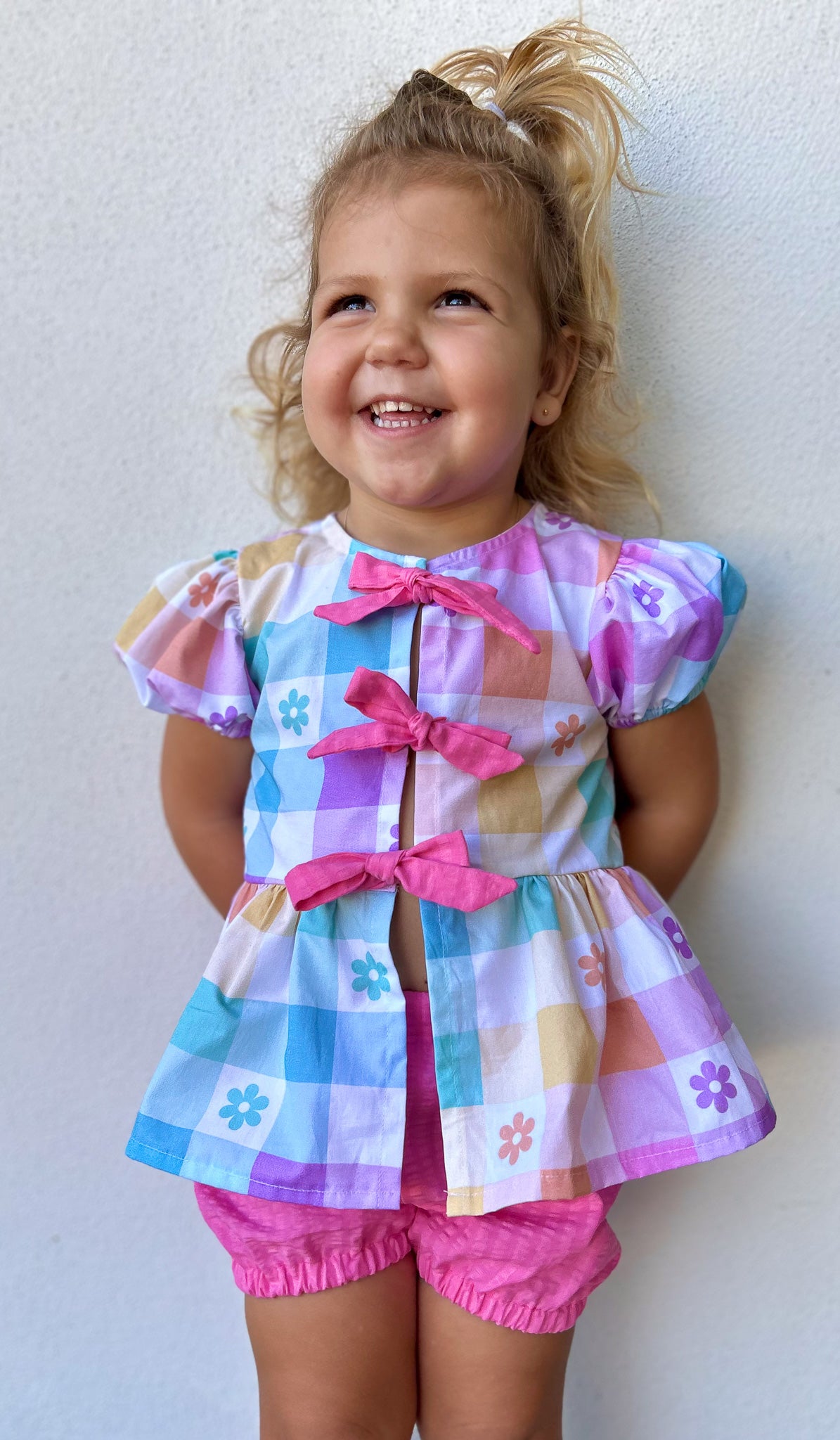 Introducing the Birdie Top—a cool and trendy addition to our Take a Bow collection, perfect for any stylish wardrobe! The Birdie Top features dainty bows along the front, adding a playful and feminine touch to this versatile design. With two sleeve options—sleeveless or puffy sleeves—you can easily tailor the top to match your style and the season.