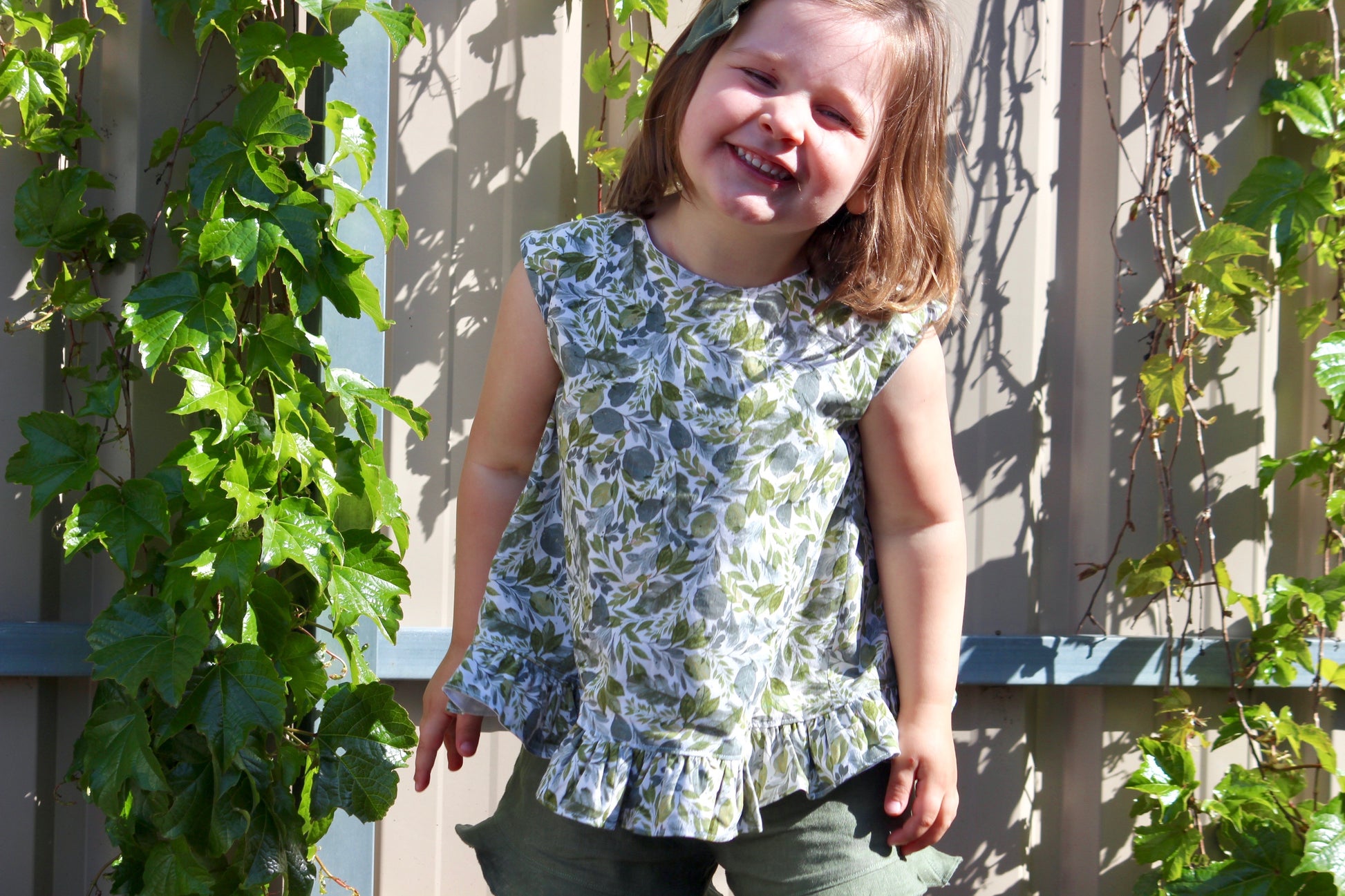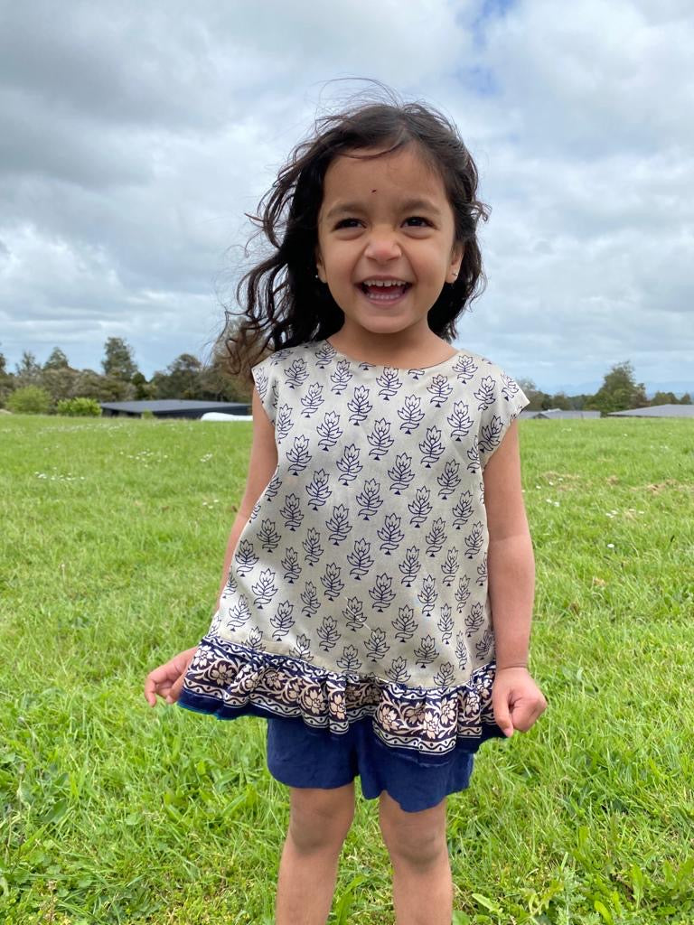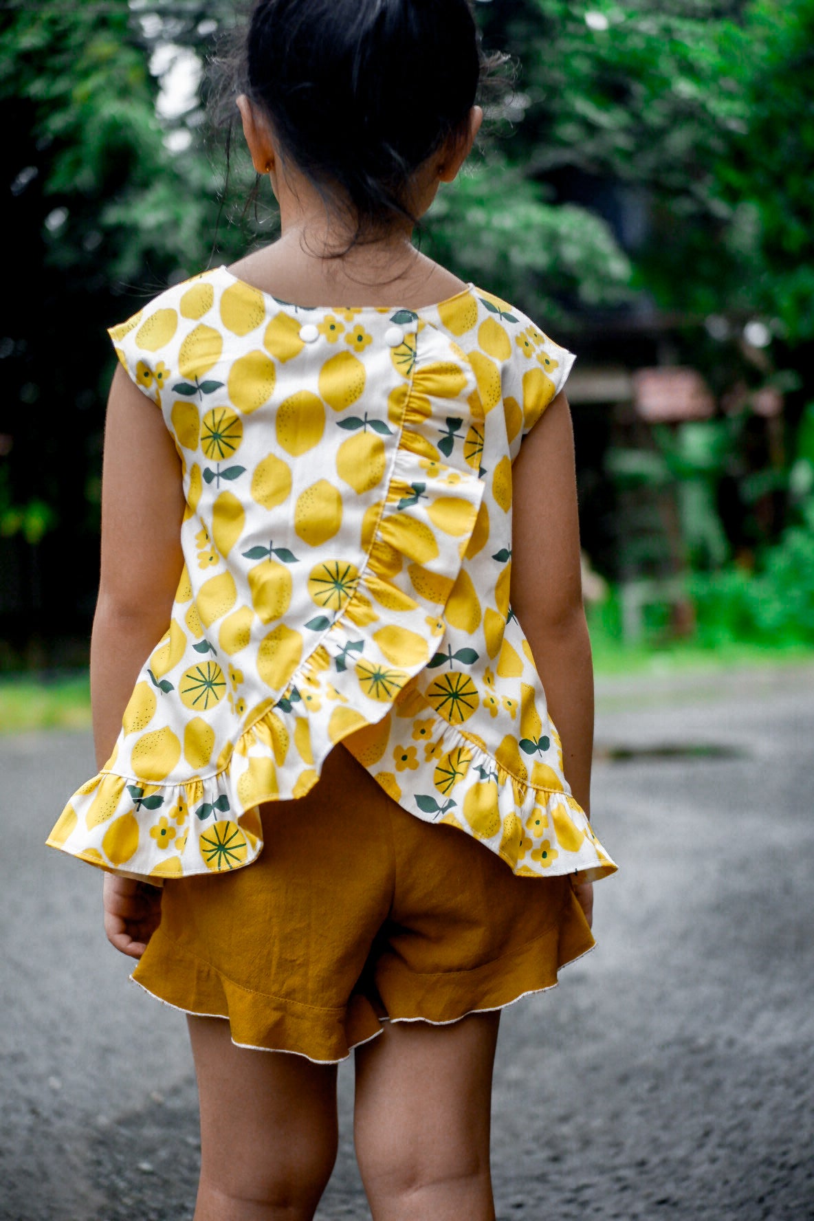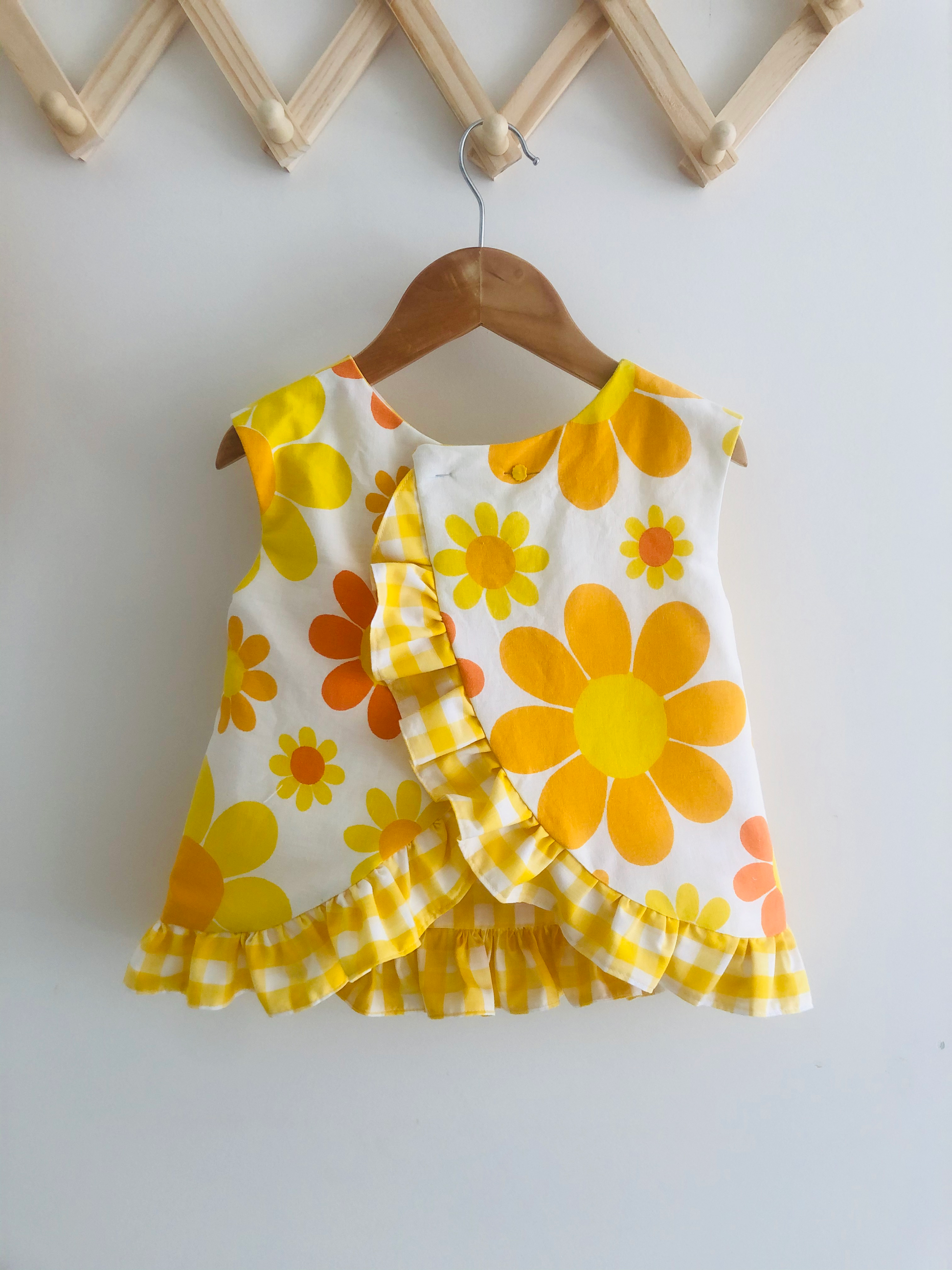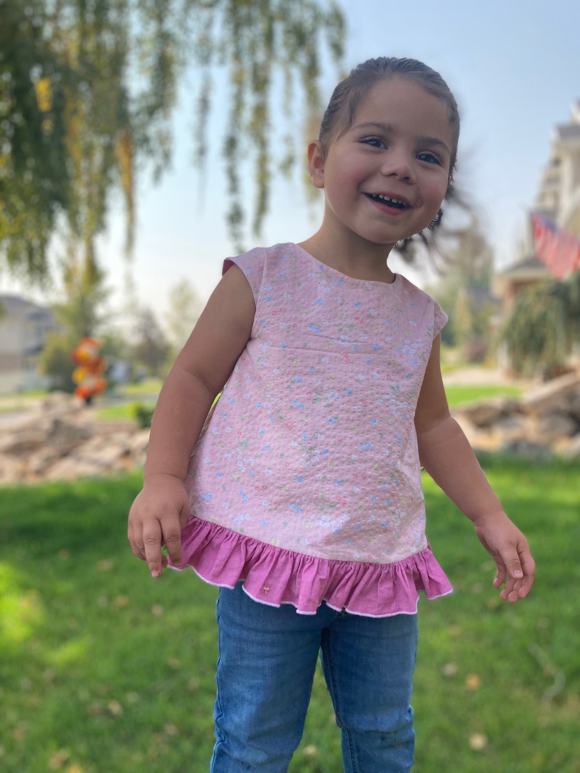 Isla is a cute and fun little swing top. It features a tulip back design and a ruffle-trimmed hem. The cap sleeve offers more protection from the sun, so it’s perfect for everyday play. Oh, and it’s reversible too!