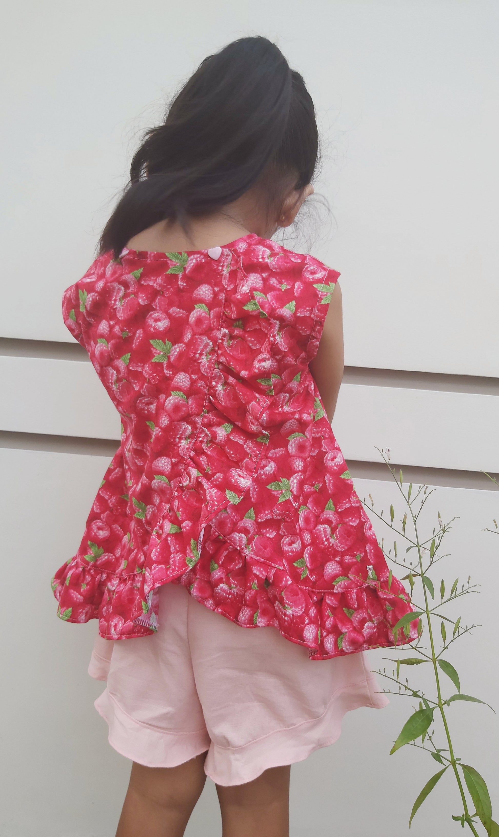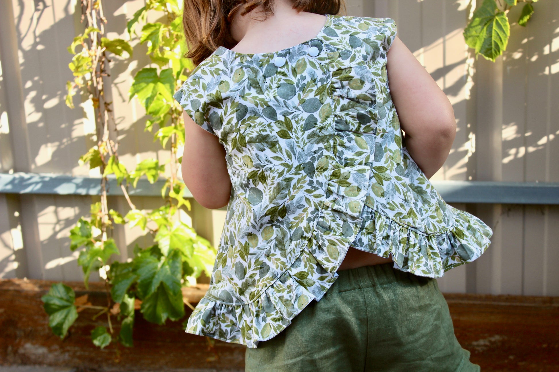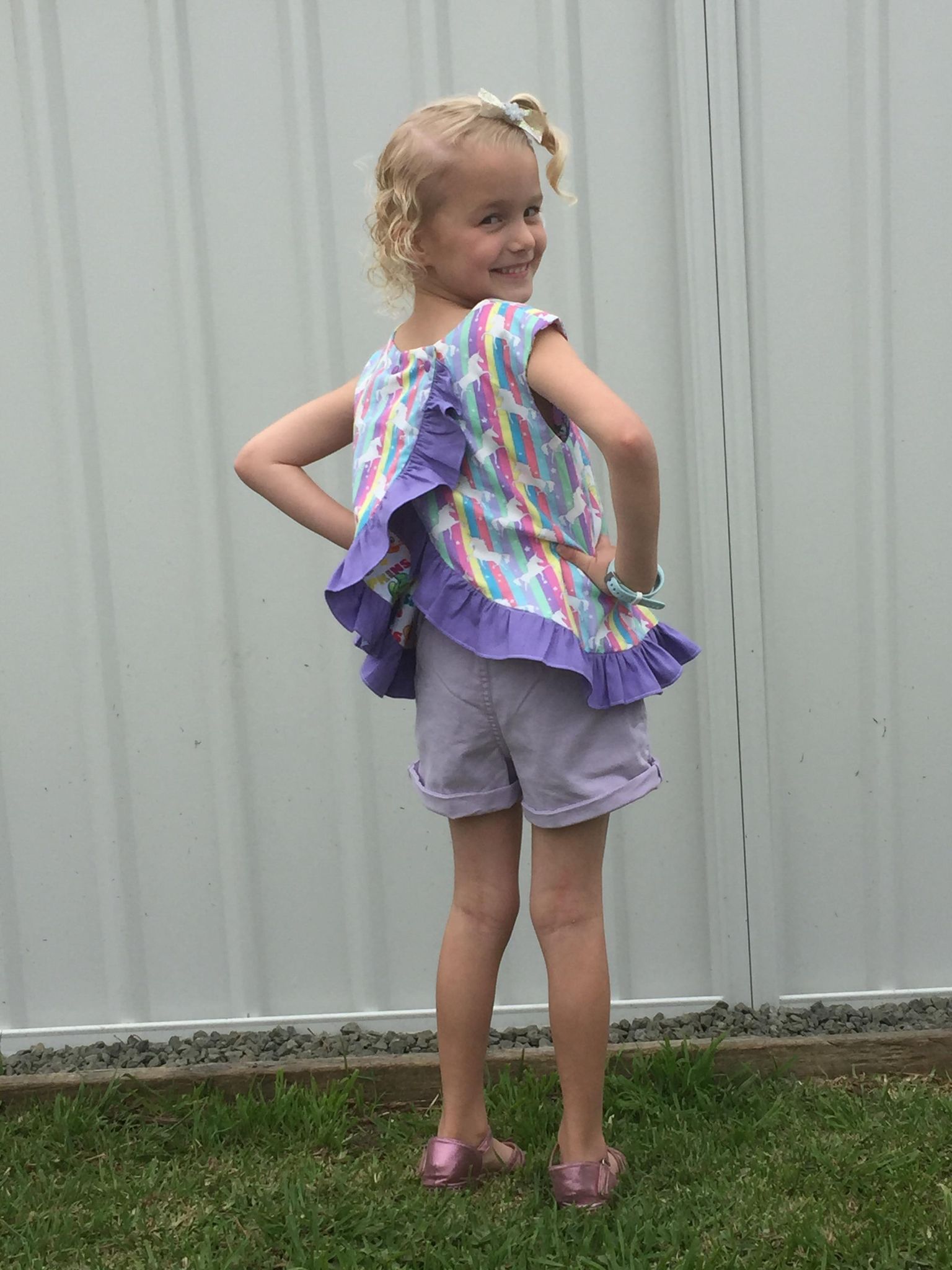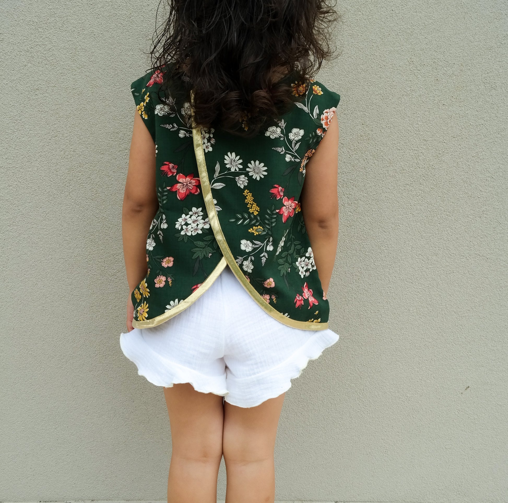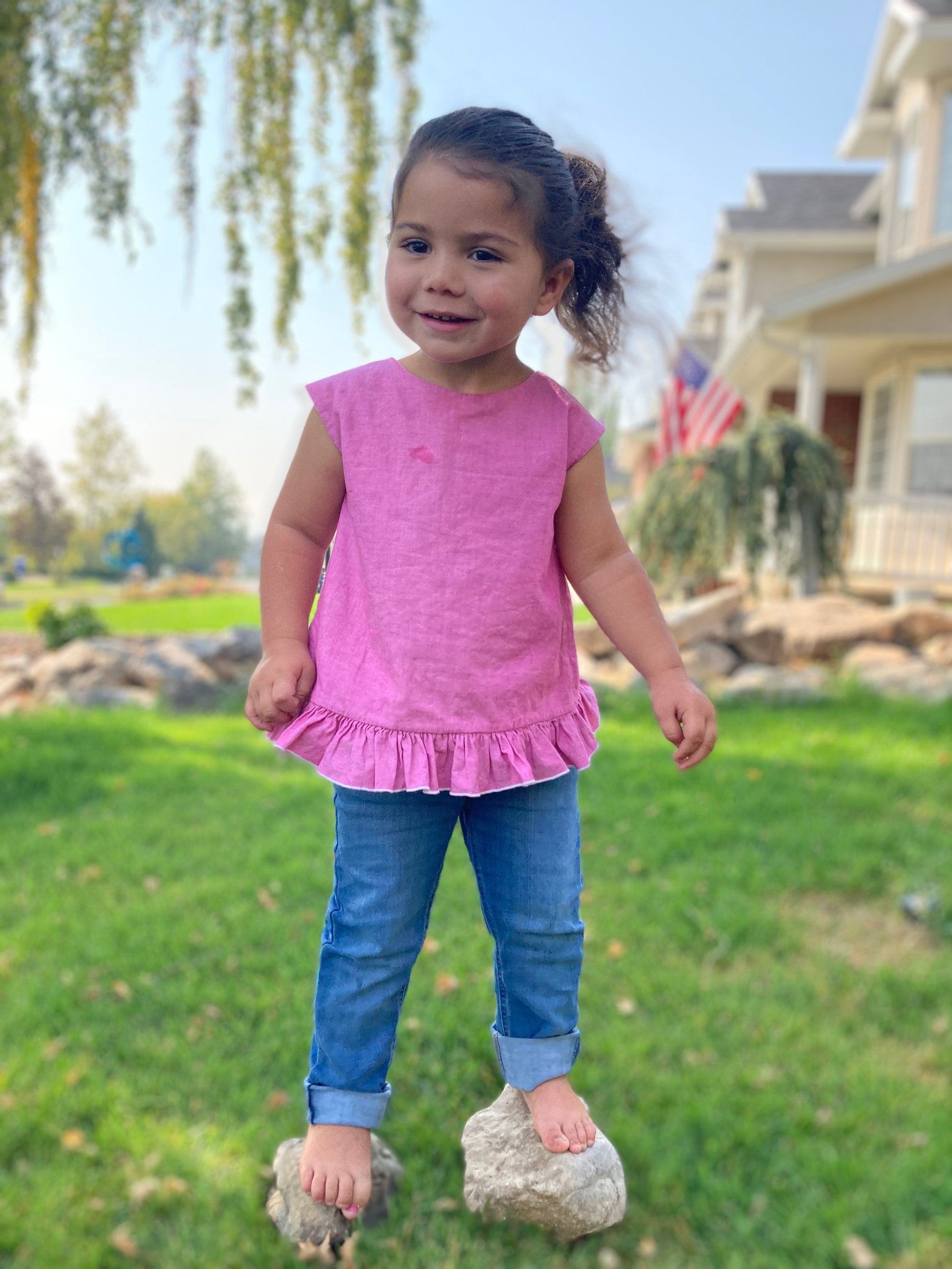 Isla is a cute and fun little swing top. It features a tulip back design and a ruffle-trimmed hem. The cap sleeve offers more protection from the sun, so it’s perfect for everyday play. Oh, and it’s reversible too!