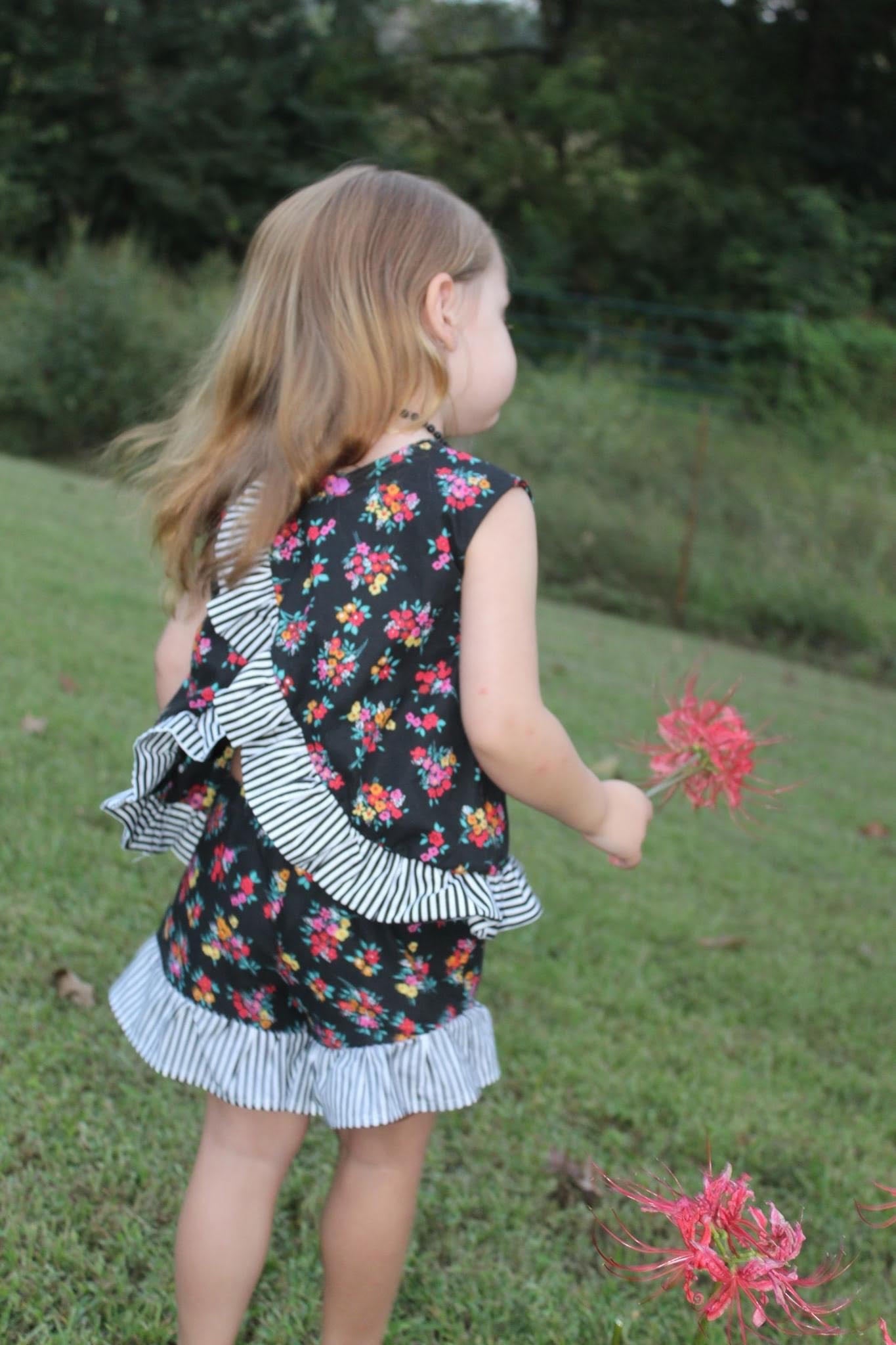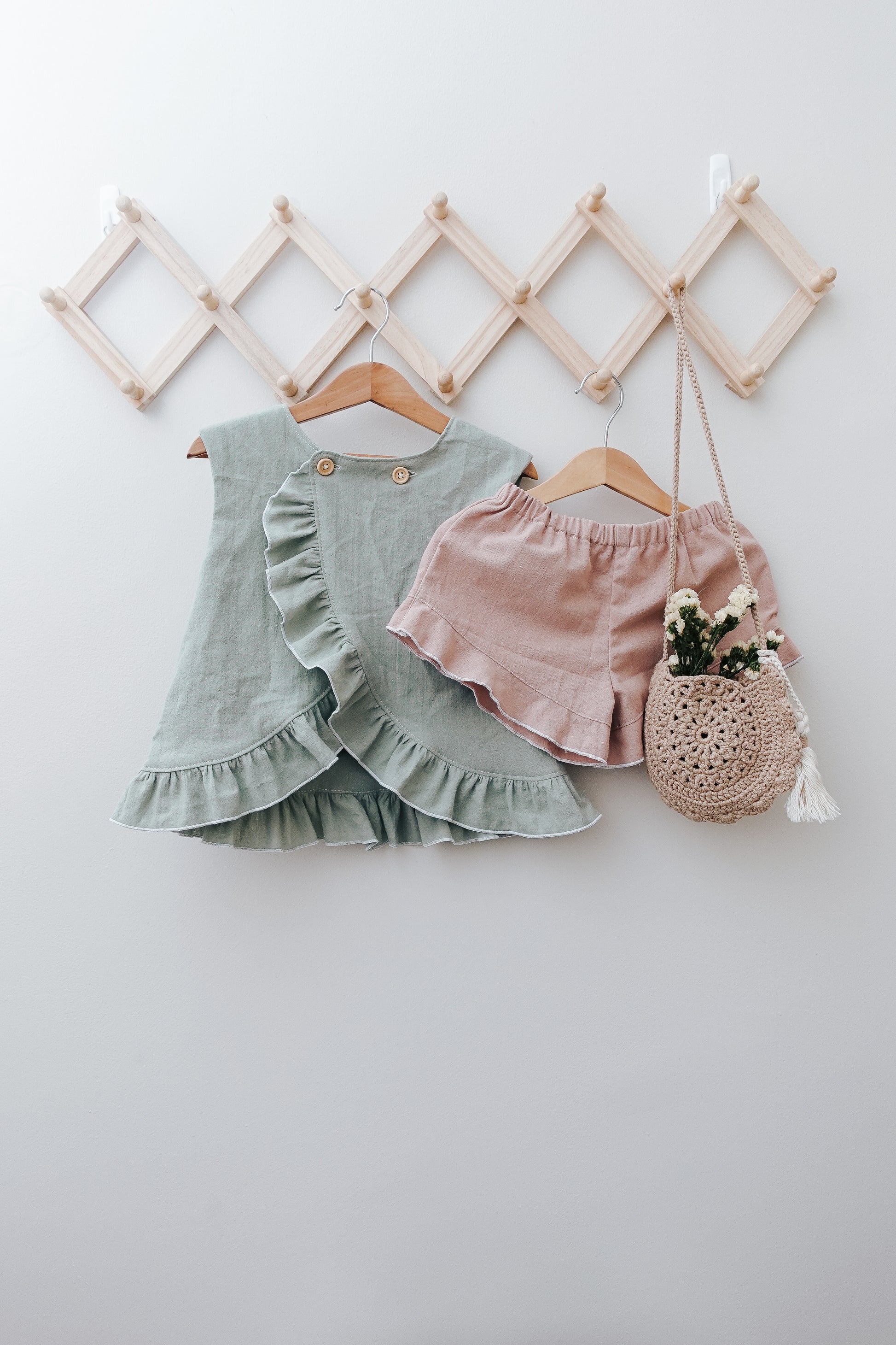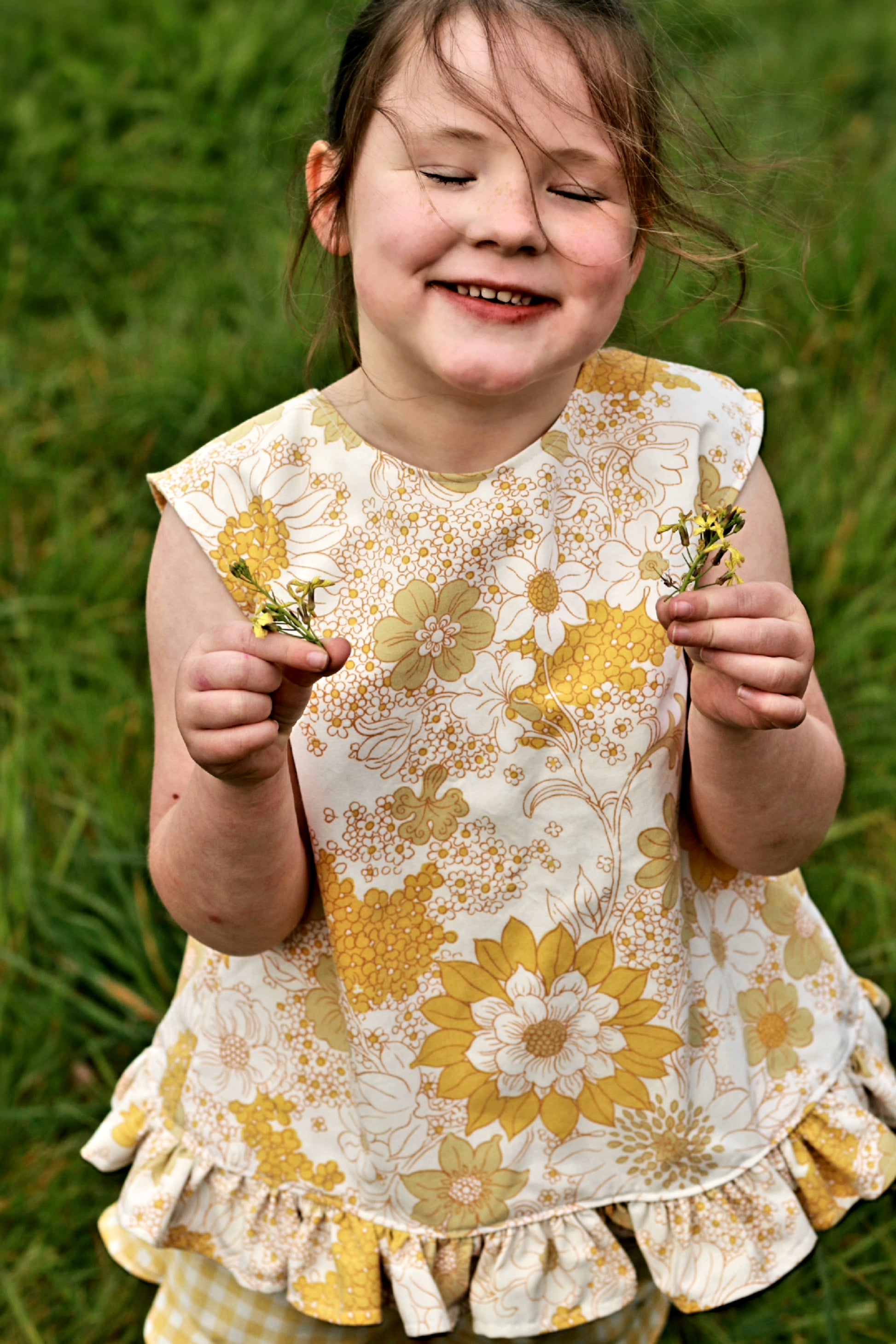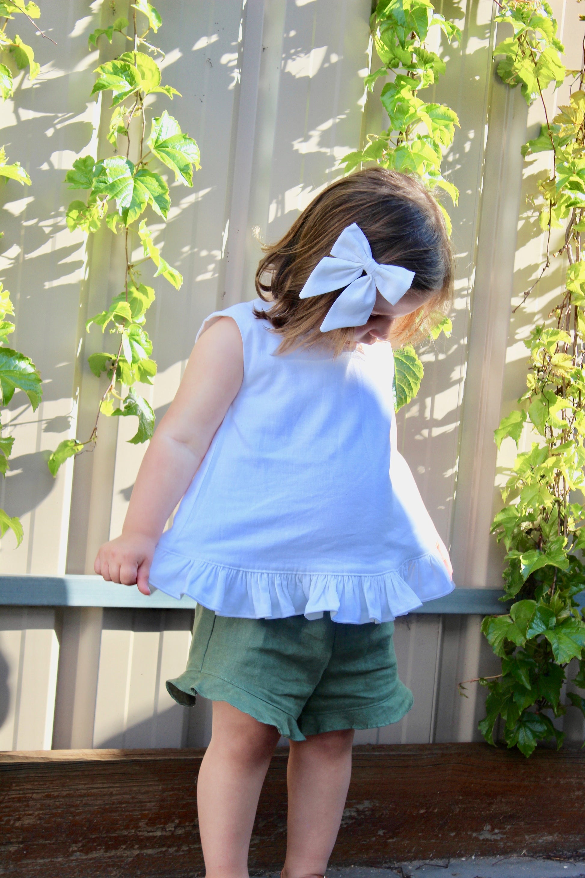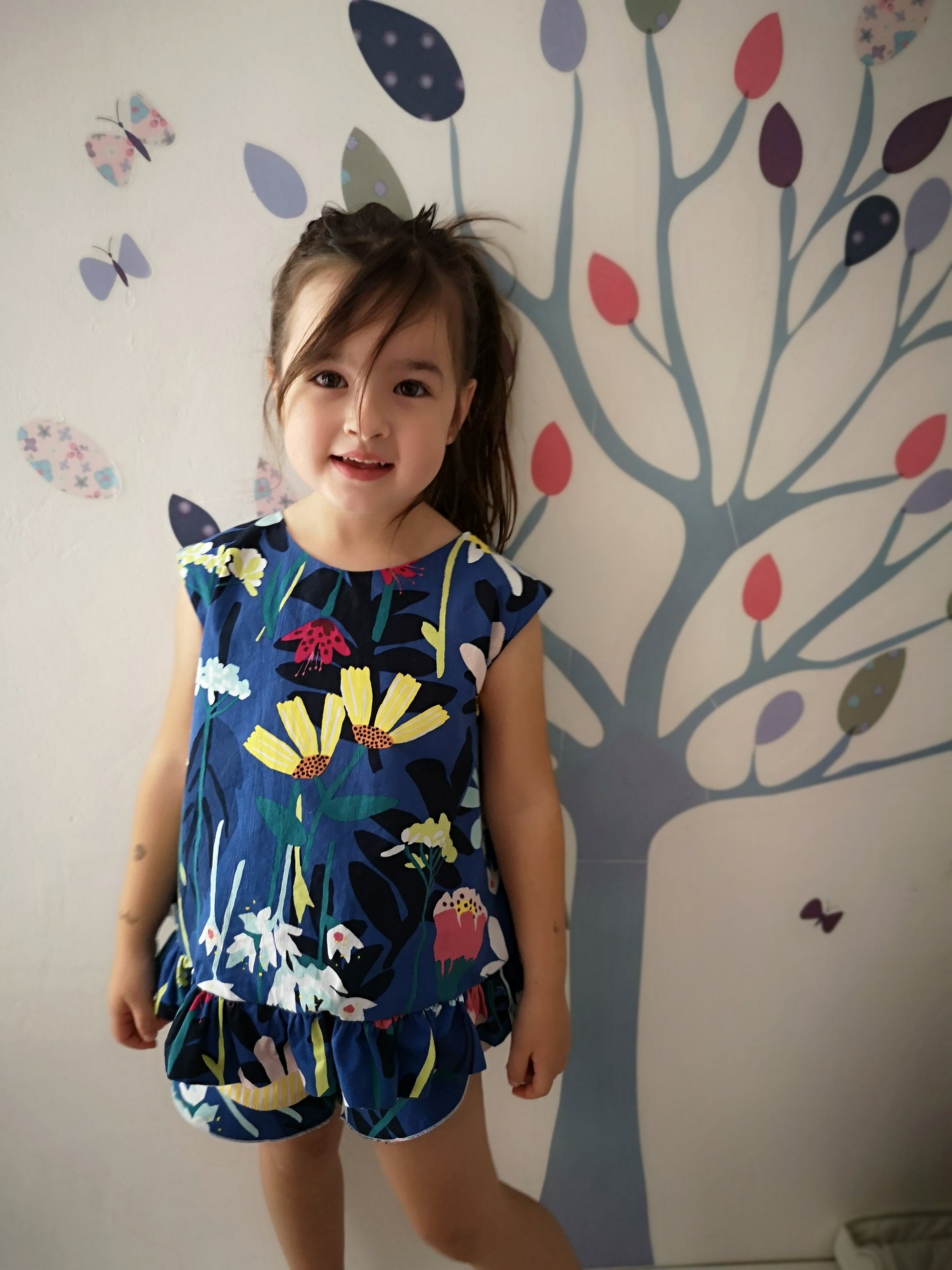 Isla is a cute and fun little swing top. It features a tulip back design and a ruffle-trimmed hem. The cap sleeve offers more protection from the sun, so it’s perfect for everyday play. Oh, and it’s reversible too!