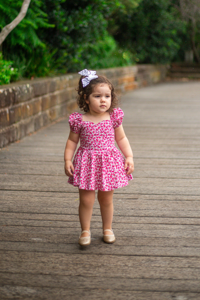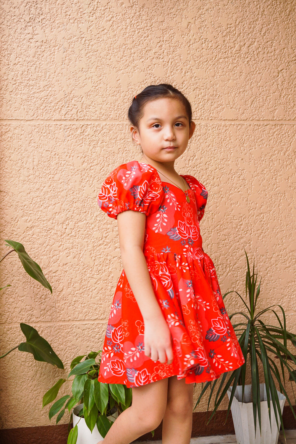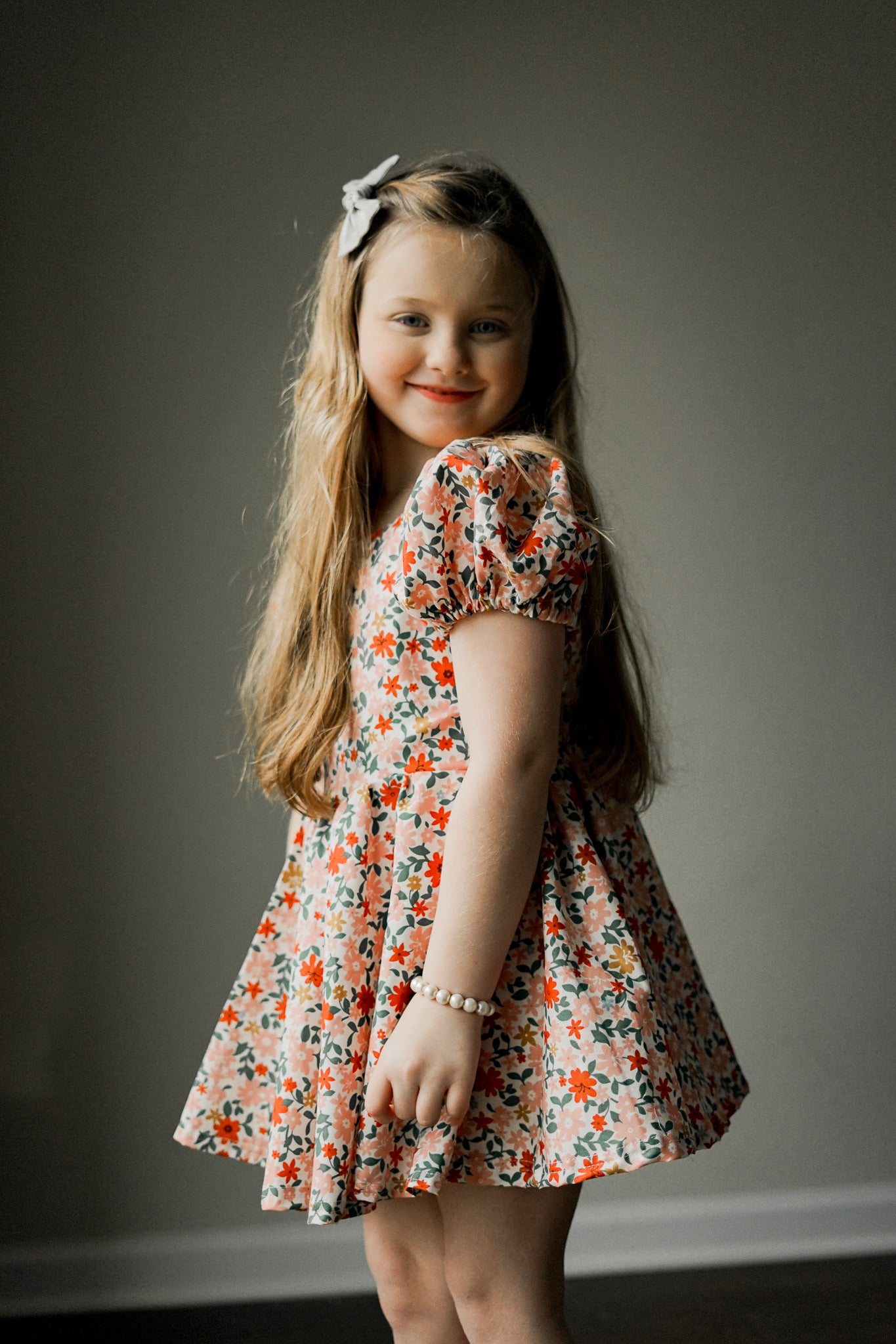 Marthena is a sweet little dress perfect for little princesses! It features a sweetheart neckline and gorgeous puffy sleeves. It also has an elasticized back for easy on and off!