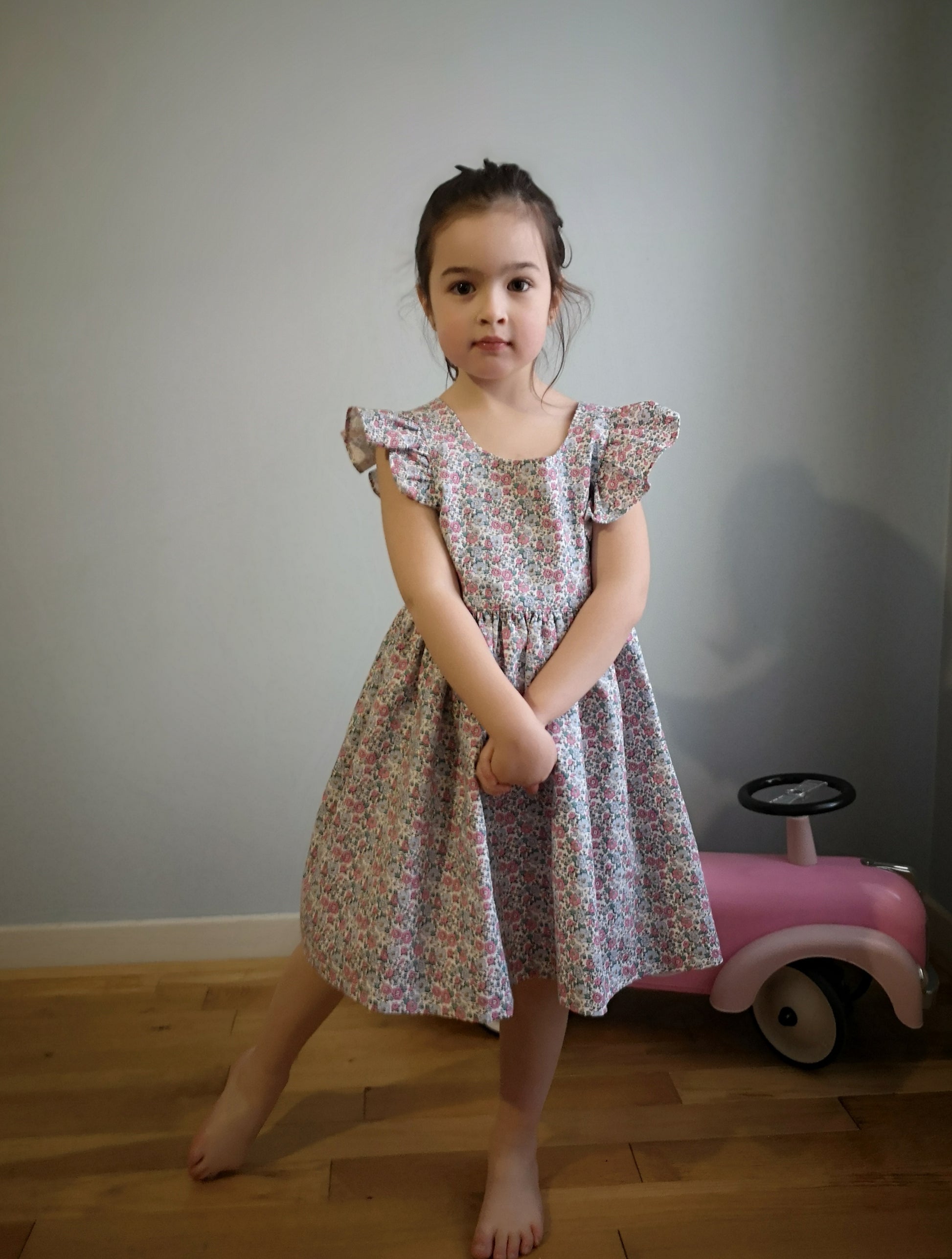 Mauve is a cute pinafore, featuring optional ruffle shoulders. This style is perfect on its own for summer, and is also perfect for layering on cold winter days.