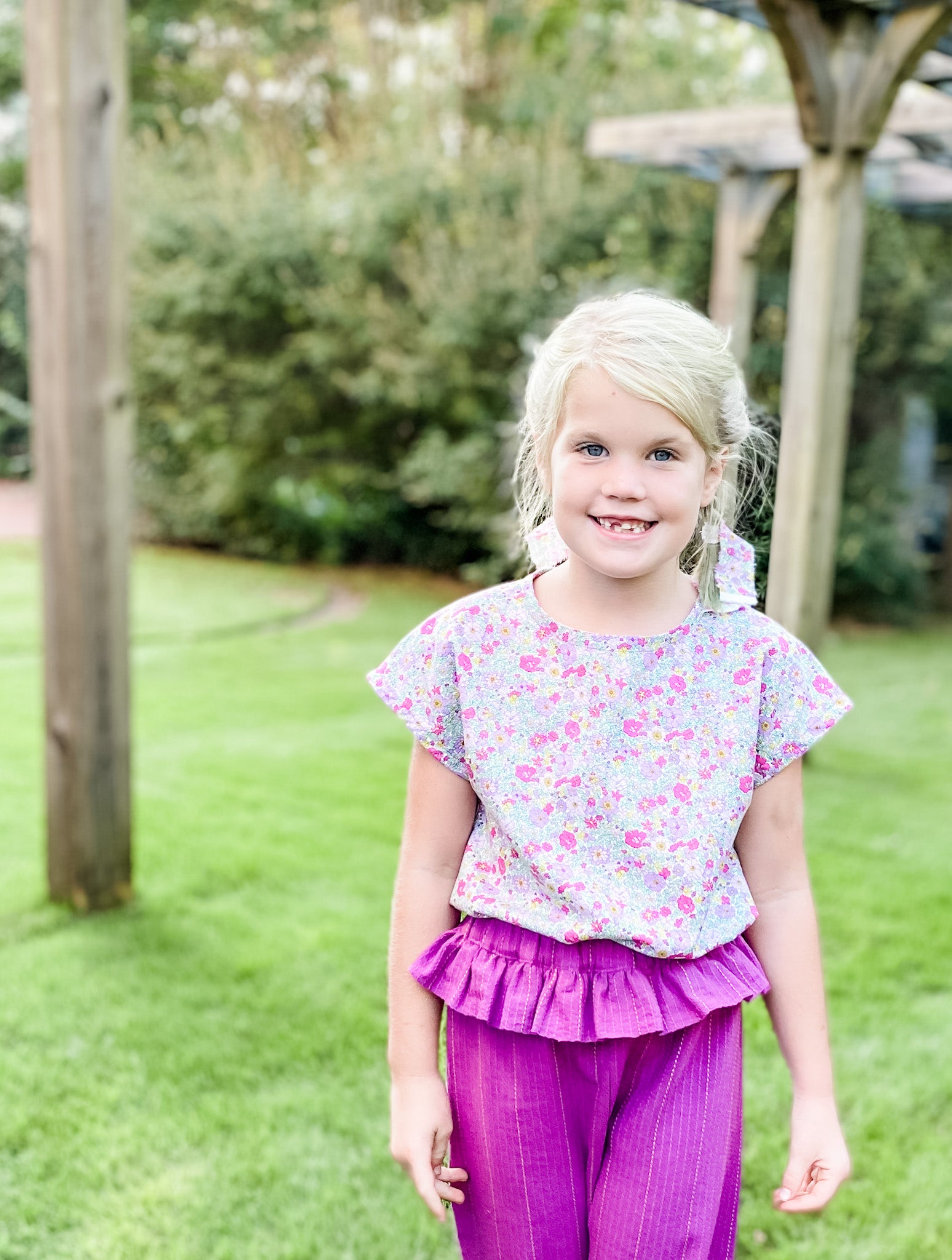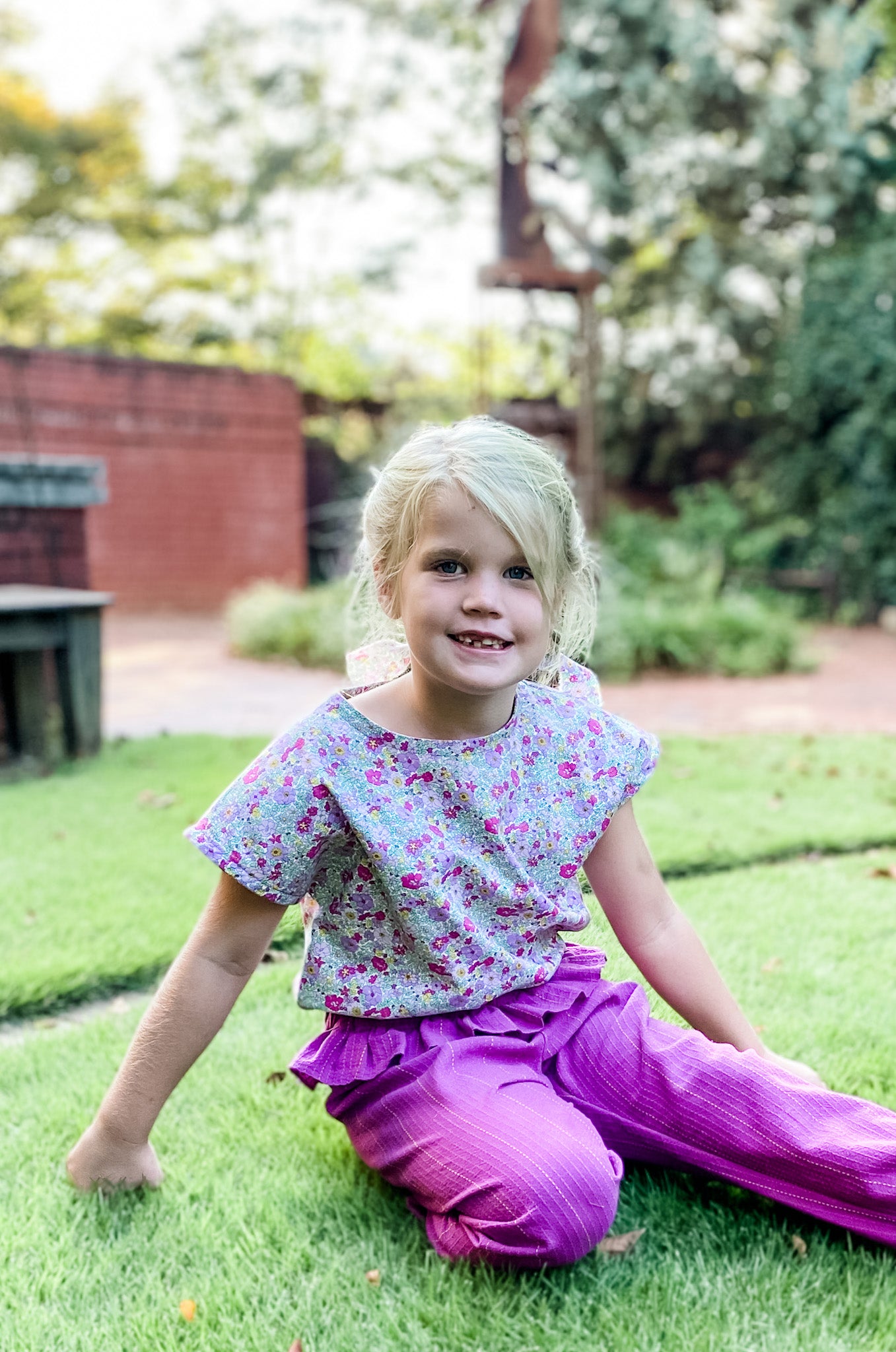 Olivia is a basic everyday shorts or pants with a cute waistband ruffle. It’s the perfect bottoms for those ruffle-loving babes. Being such a quick and easy sew, it will surely be a staple in your girls' wardrobe!