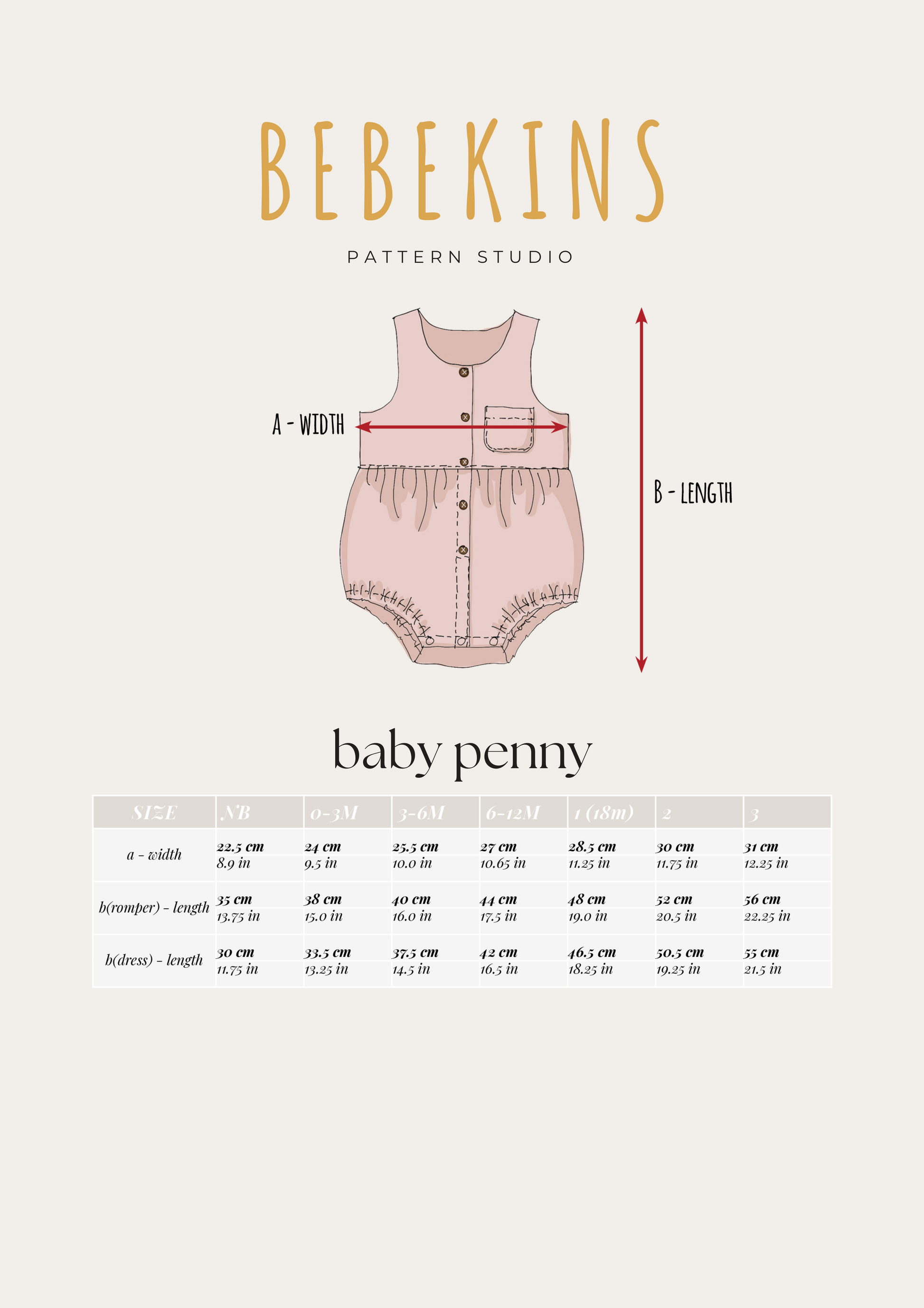 - Skill Level: Confident Beginner. The Baby Penny pattern includes clear, illustrated instructions, making it a delightful project for sewers with some experience.