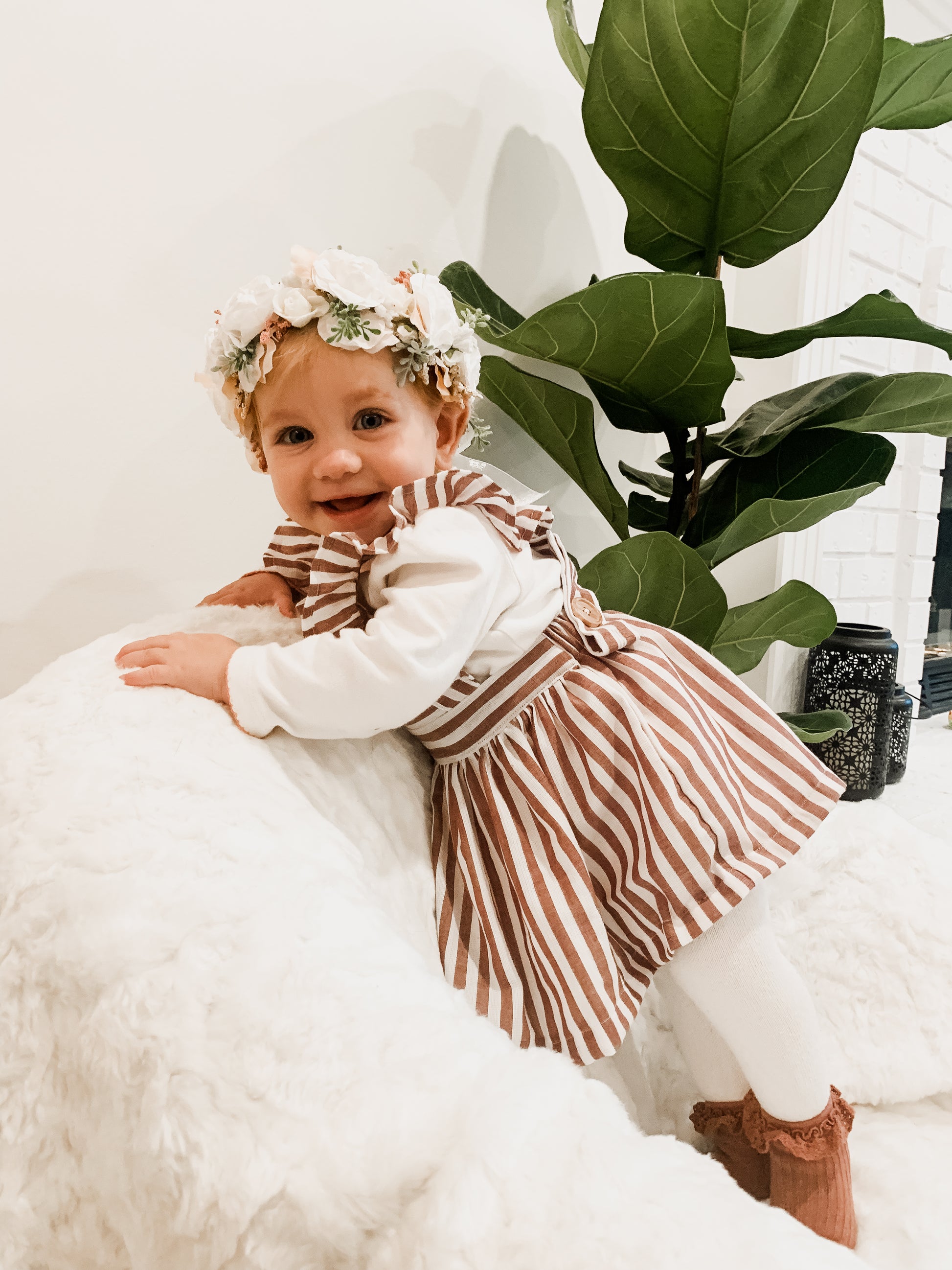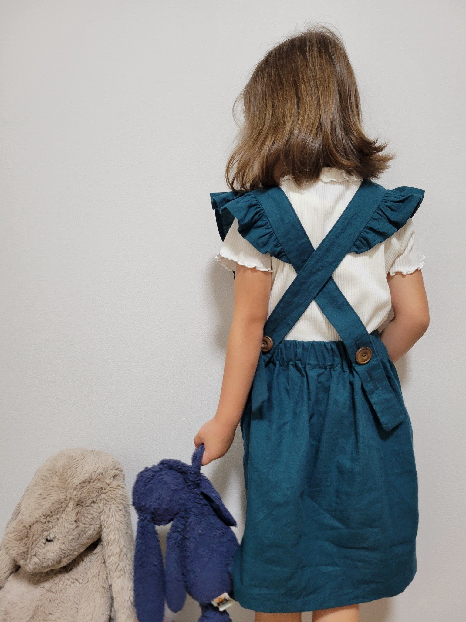 Introducing Posey—an adorable pinafore or playsuit featuring a charming square bib, adjustable ruffled straps, and a knee-length skirt. This versatile piece can be worn all year long, perfect for layering over tops or wearing on its own during warmer months. With its sweet and timeless style, the Posey is sure to become a staple in your little one’s wardrobe.