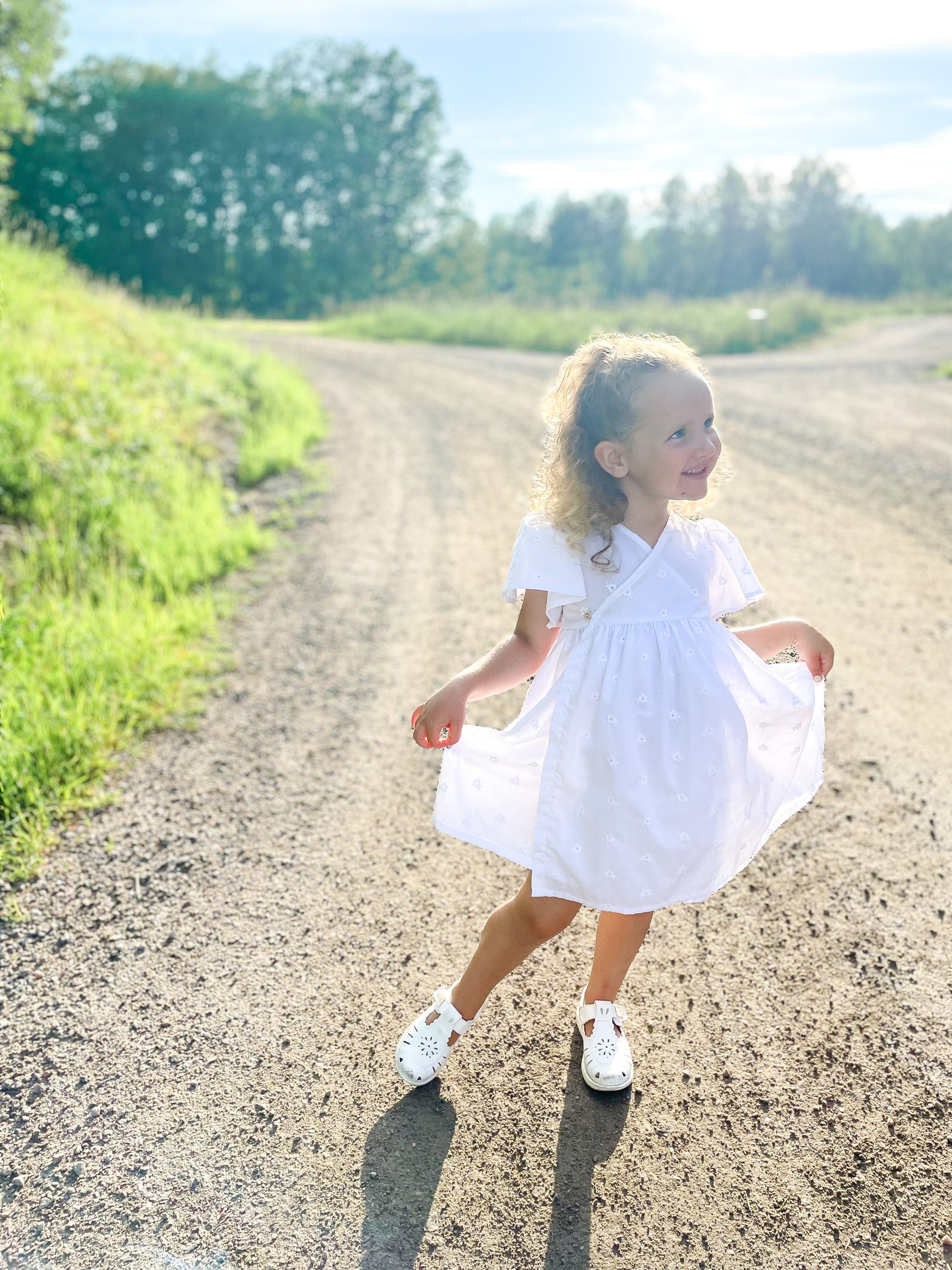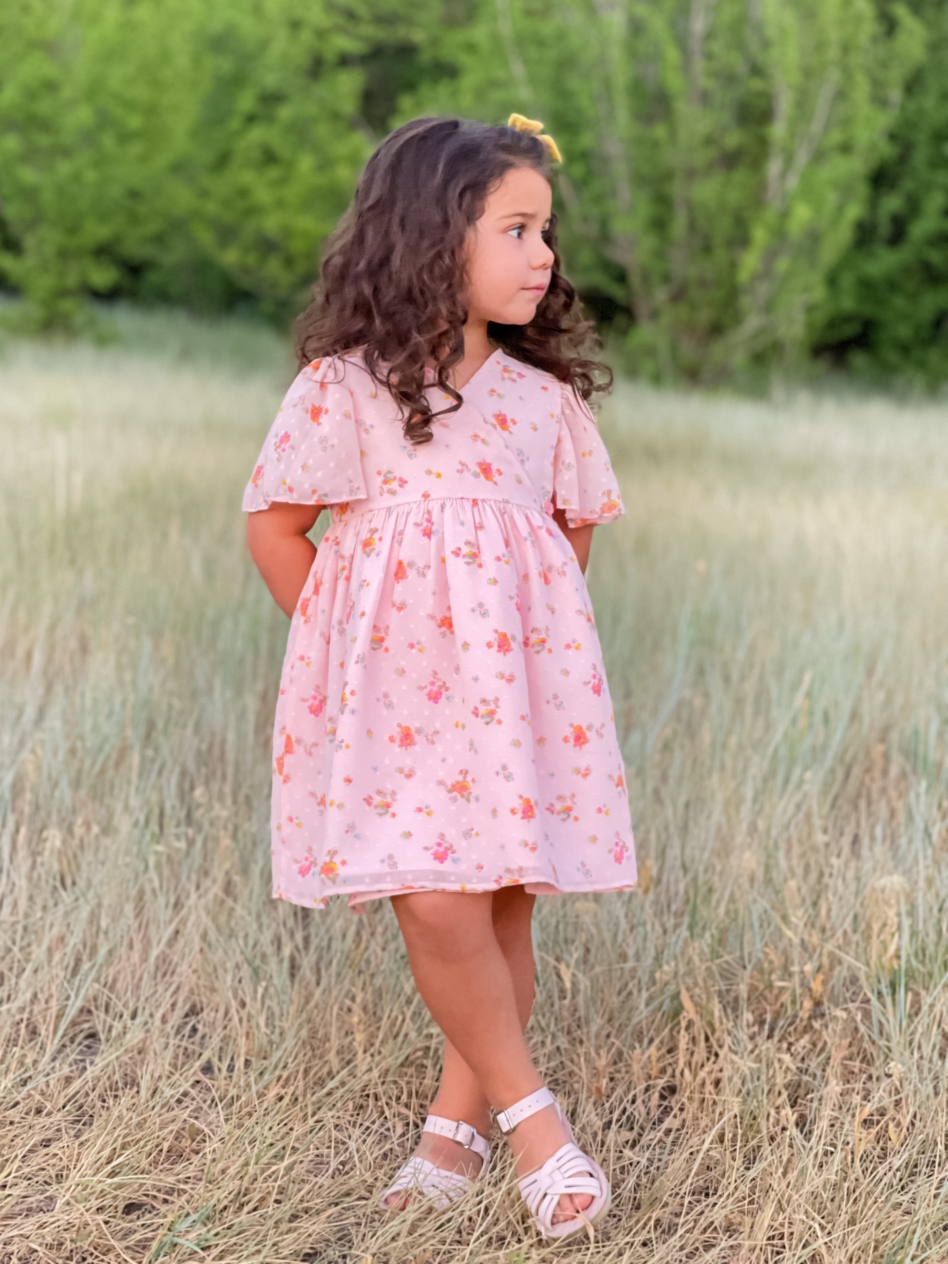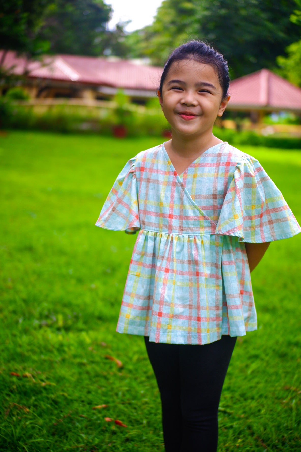 Tilly is a cute little dress or top that features beautiful and flowy angel sleeves. Its front wrap style makes dressing a breeze for your little ones! It is the perfect dress to wear for special occasions or simply for everyday play!