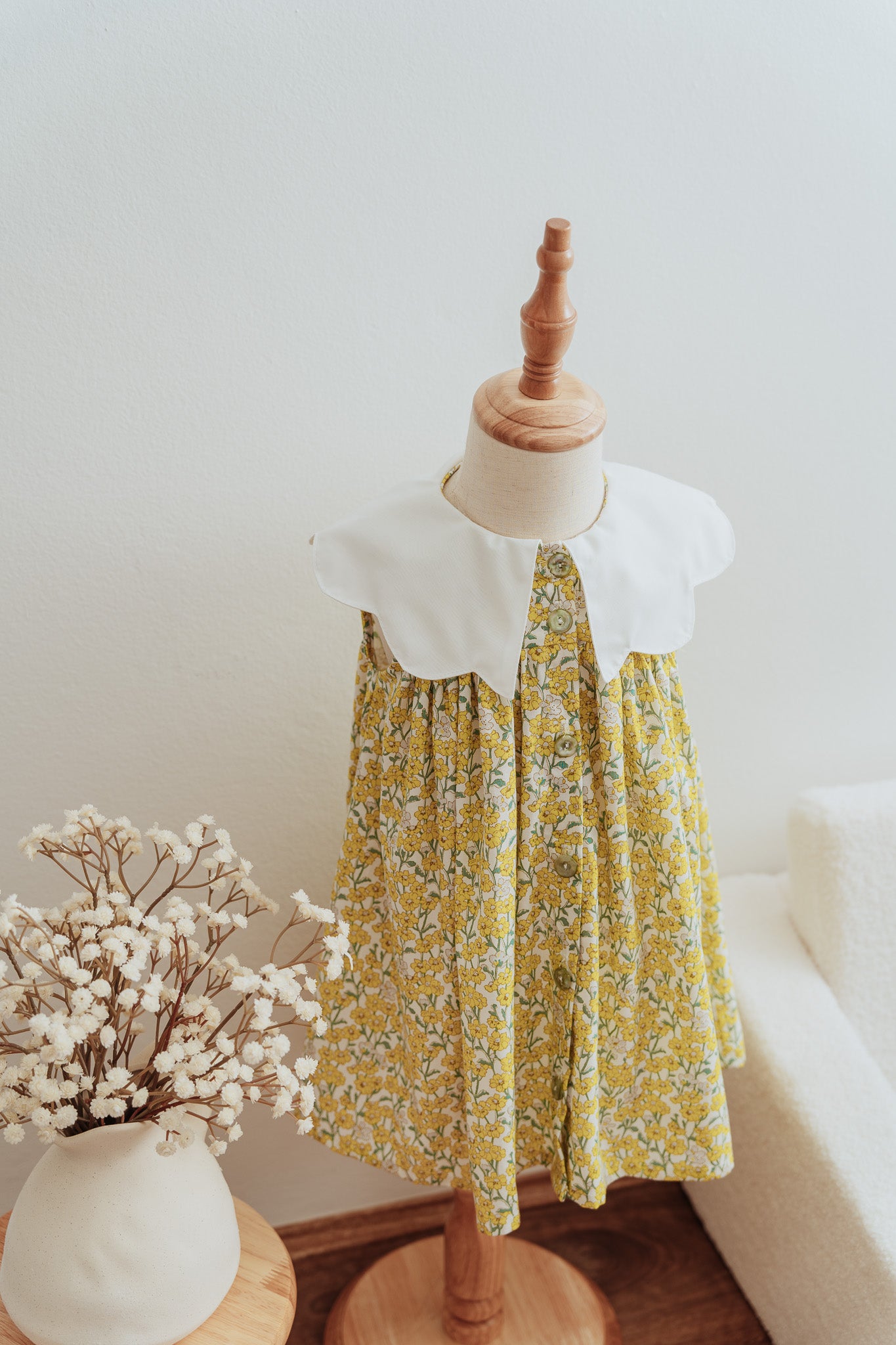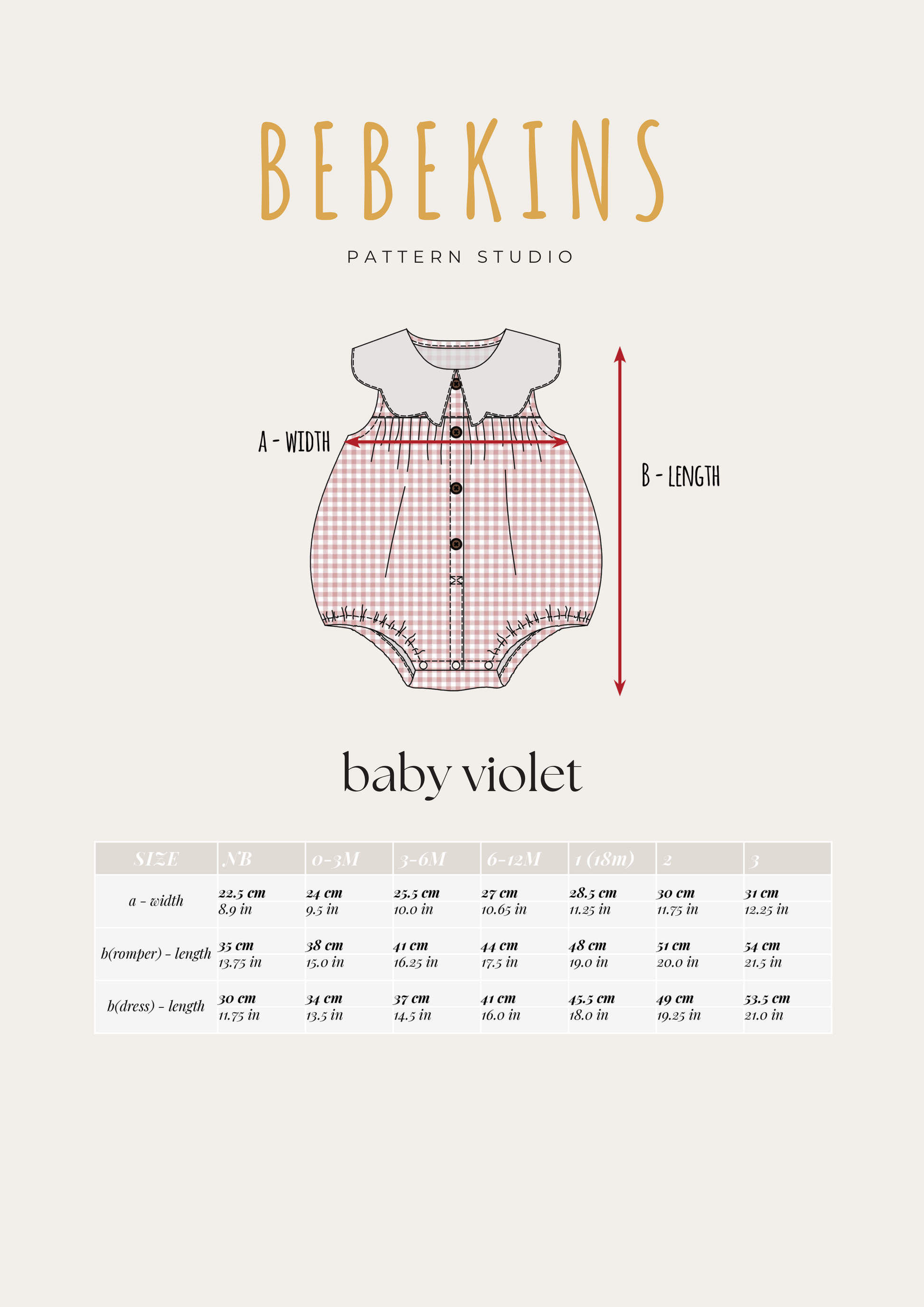 Meet the Baby Violet Pattern—a darling baby-sized version of our beloved Violet design, now with an added romper option perfect for crawlers and little explorers! With its signature scalloped collar and sweet button-up front, this versatile pattern includes options for a blouse, dress, or romper—ideal for layering or wearing on its own.